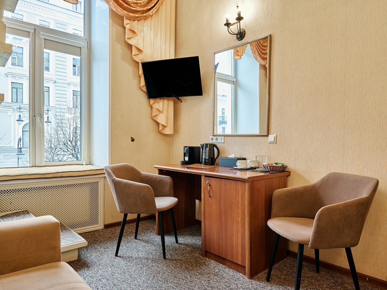Прекрасно расположенный в самом сердце города на Неве, милый уютный отель! Оригинальная планировка двухуровневых номеров и наличие всего необходимого (от фена, чайника, до сушилок для обуви) делает проживание комфортным, а приветливое отношение персонала оставляет самые лучшие впечатления от отеля!