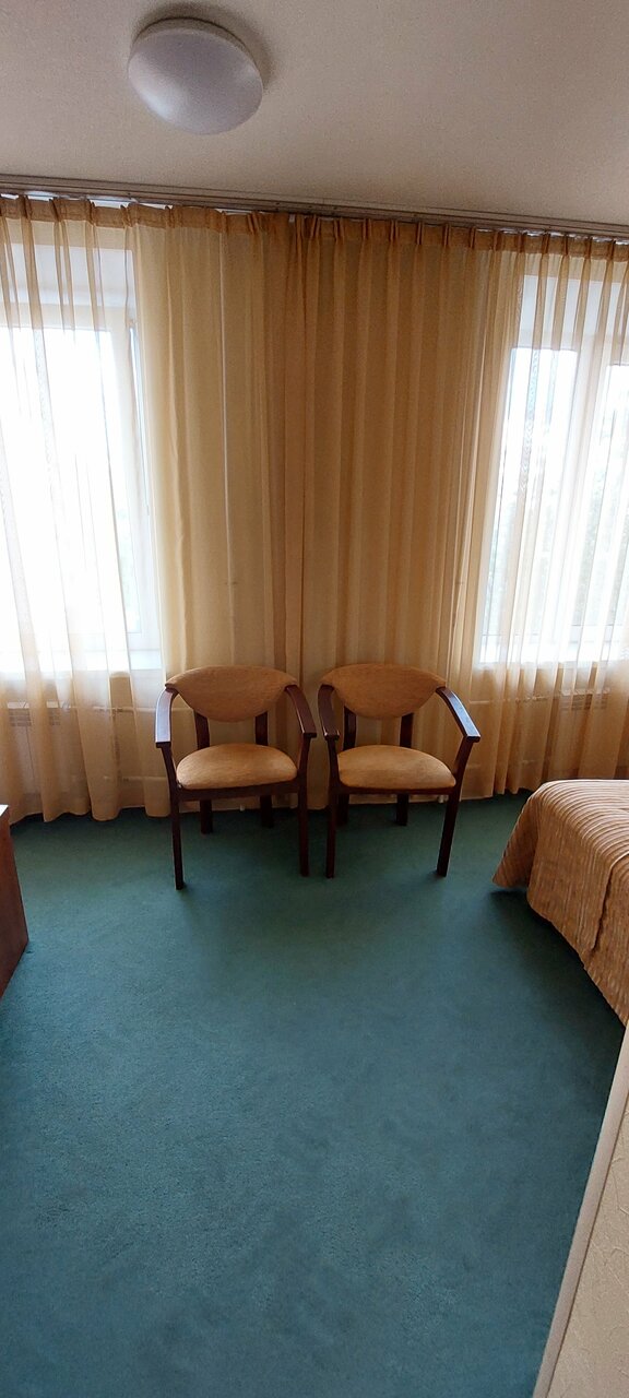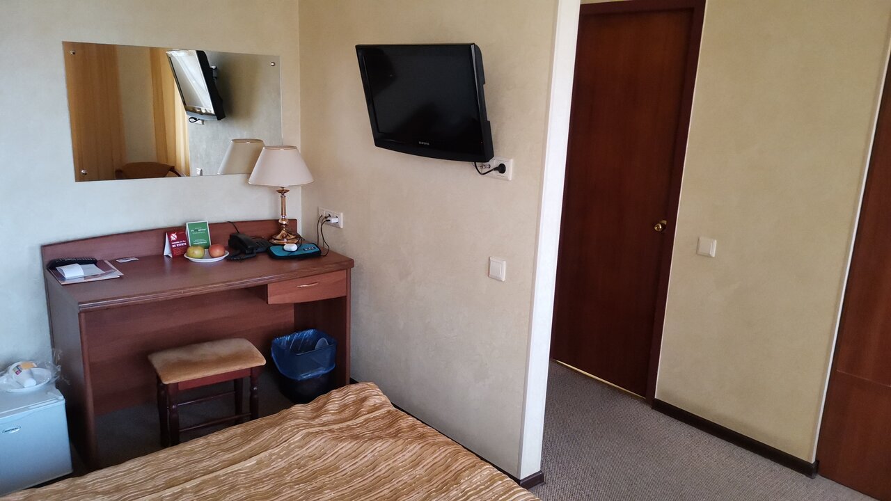 Из плюсов — всегда в наличии свободные номера. Из минусов — состояние номеров, видно что мебель переживает не лучшие времена, и присутствует посторонний запах в номерах.