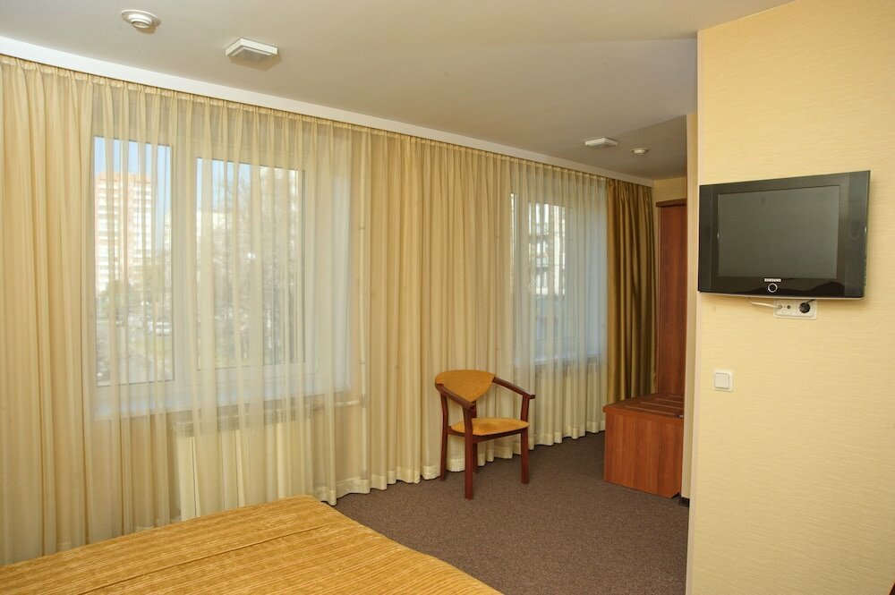 Нормальная гостиница для трех звезд. Белье и номера чистые, вода есть, номера достойные. Проблема с интернетом иногда вай фай есть, но интернета нет. Хороший шведский стол на завтрак. Не плохой ресторан. Все что необходимо для простого отдыха. А уж если от вдовушки какой попытаться добиться невозможного, то лучше не найдешь .