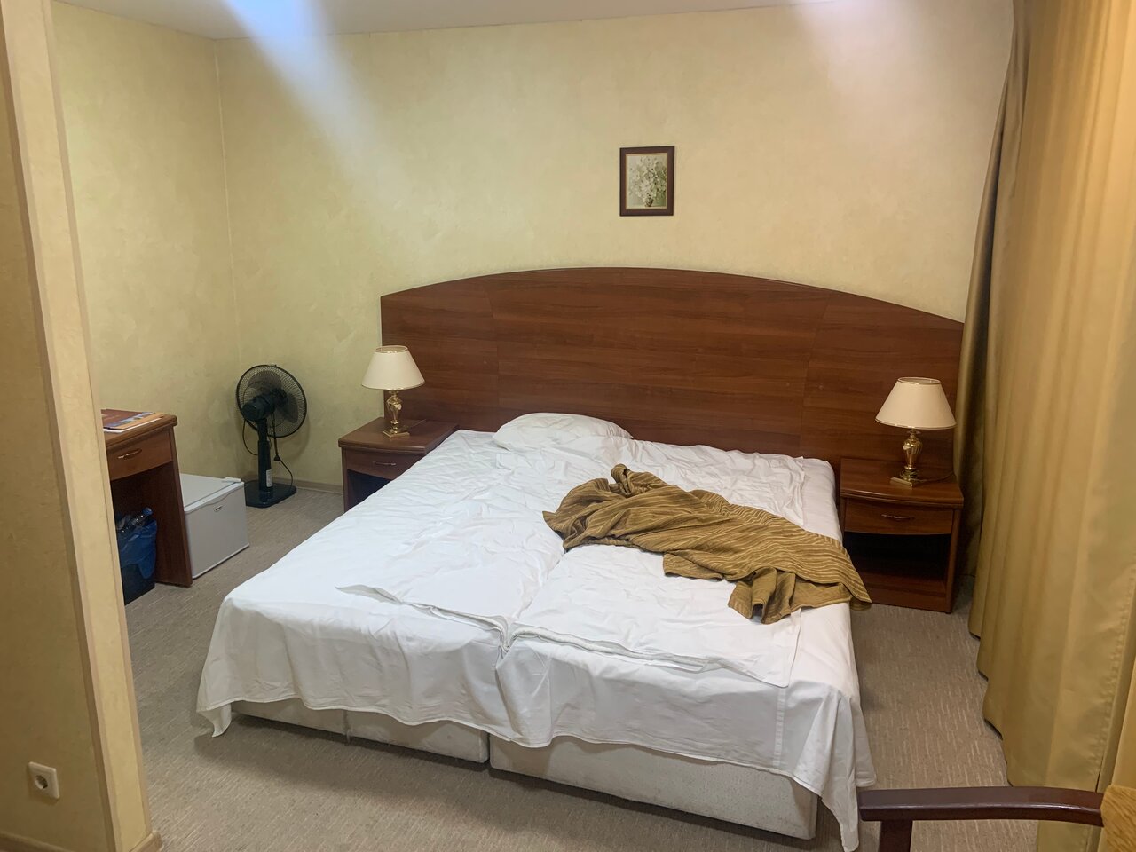 Отель понравился, в шаговой доступности метро, автобусная остановка, магазины, через дорогу театр буфф. На первом этаже ресторан, очень хотели есть по приезде, взяли там же суп и второе, принесли огромные порции. На завтрак шведский стол, разнообразая еда на любые предпочтения. В номере чисто, рабочий холодильник, есть небольшой портативный сейф, тёплые одеяла в шкафу и дополнительные подушки. Два одеяла на большой кровати, что очень удобно. Убирались каждый день, меняли полотенца( два больших, два маленьких и одно для ног) , в ванной одноразовые гель, шампунь, мыло, шапочка, звездам соответствует. Единственный минус — запах , но это, видимо, постояльцы курили и ковролин впитал запах. Кондиционера нет, стоит вентилятор, но нам он не понадобился. Отель рекомендую, остановилась бы снова)