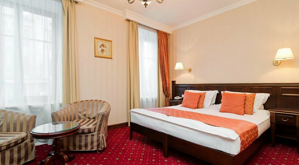 Из плюсов — выйти покурить на стульчики у входа Из минусов: 1 в номере убитый ковролин весь в пятнах, от крови до непонятно чего. 2.кровати отвратительные с уезжающим матрацами которые разъезжаются и вечно просыпаешься в образовавшейся дыре. ( двуспальная) 3.раздолбаная со времён 90х ванная комната( фартук раковины и раковина вся в трещинах.) За 4900 ночь это дичалый оверпрайс. Красная цена этого убитого шалаша- 1300 и то -дорого. Те,кто пишет, что все хорошо ,мне кажется у них, стокгольмский синдром и не хотят видеть этих косяков, что бы не сильно расстраиваться потраченным в пустую деньгам. Так как прямо в центре на Невском, можно не утруждаясь найти гораздо чище, новее и не будет похоже на свинарник. И расположение на отшибе Питера После этого отеля хочется помыться. Как итог- фу и мерзко. Не тратьте время и деньги на эту ‘халупу’