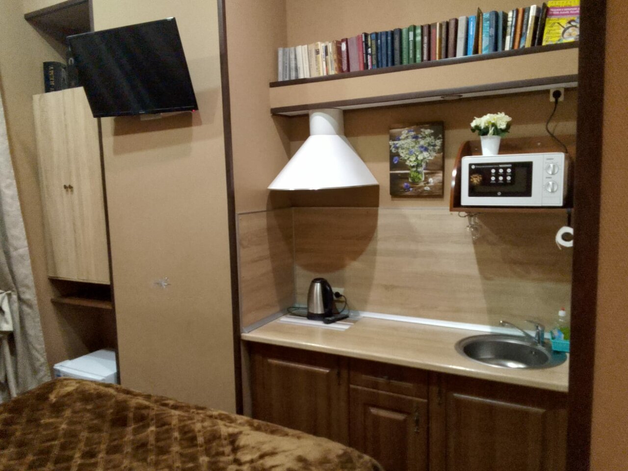 Мне очень понравилось! Жаль фото не сделала! Очень уютная студия с мини кухней и собственным санузлом. Обязательно воспользуюсь в следующий раз.