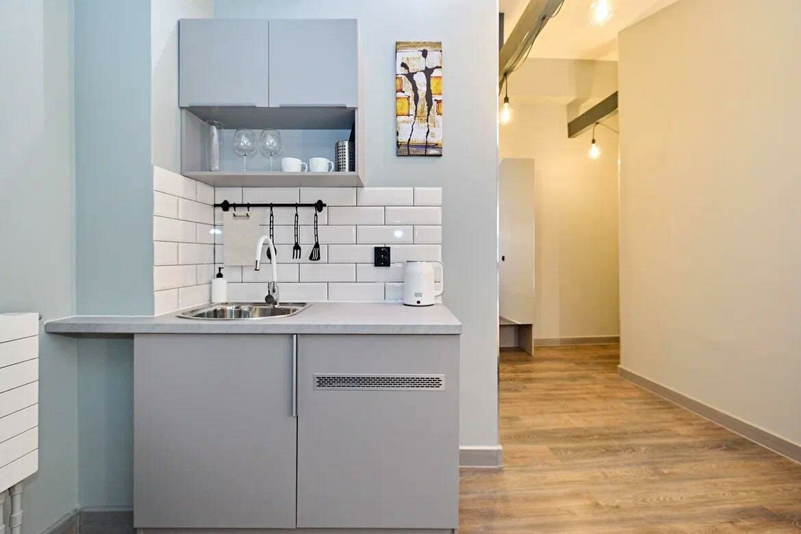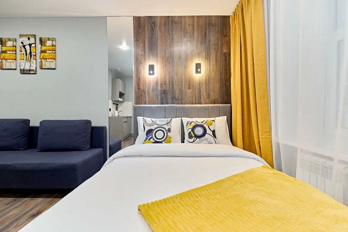 Однокомнатный номер, состоящий из спальни, ванной комнаты с душевой и полностью оборудованной кухни с варочной поверхностью, духовым шкафов, микроволновой печью, холодильником, посудомоечной машиной, полным комплектом посуды и столовых приборов.