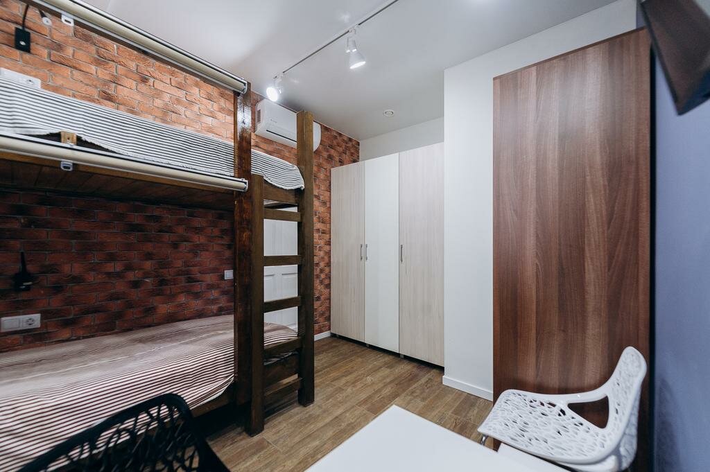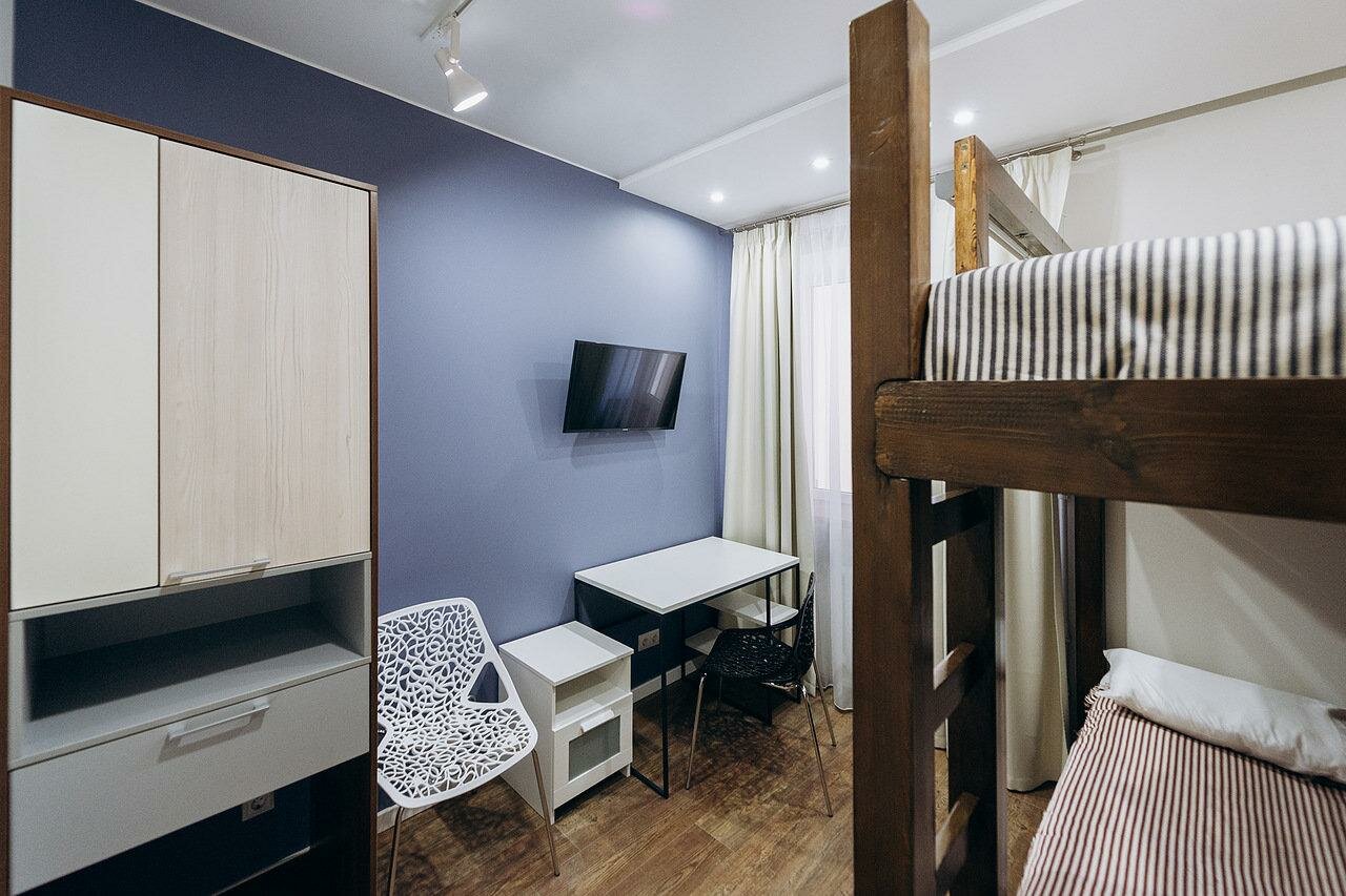 Компактный двухместный номер 10м2 с собственными удобствами, телевизором, интернетом Wi-Fi.К вашим услугам чайный набор, персональные тапочки, зубной набор,постельное белье и полотенца.В общей зоне имеется мини кухня с холодильником, микроволновкой
