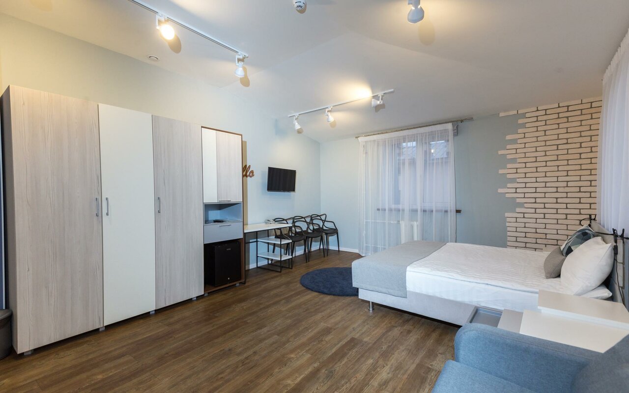 Апартаменты с собственным входом, собственными удобствами, мини-кухней с микроволновкой, холодильником, ТВ, Wi-Fi и минимальным набором посуды.К вашим услугам чайный набор, персональные тапочки, зубной набор, постельное белье и полотенца.