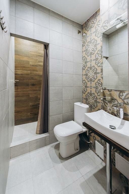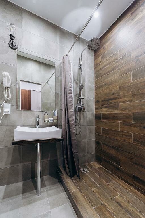 Отель понравился. Отдыхали семьей из 4х человек. Номер просторный, свой санузел, большая двухспальная кровать, двухъярусная кровать, холодильник, телевизор, кондиционер. Номер чистый, уборка по запросу, белье меняли раз в 4 дня. Хорошее место расположения, рядом трамвайная остановка, минут 7 до троллейбусной/автобусной остановки, минут 14 до метро. Рядом много магазинов и кафе. Отель советую.
