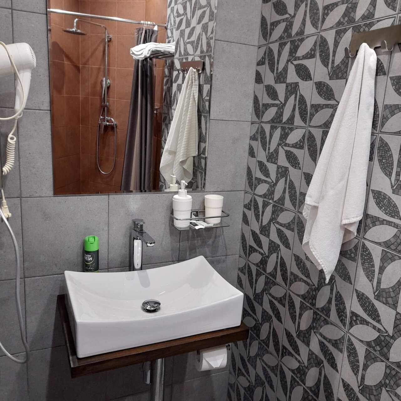 Приятная ,уютная гостиница,вежливый персонал.Комнаты компактные,но всё необходимое имеется.Так же на первом этаже есть мини столовая,но готовка только по запросу.Покушать можно вне отеля ,в округе достаточно мест где можно не дорого по кушать.