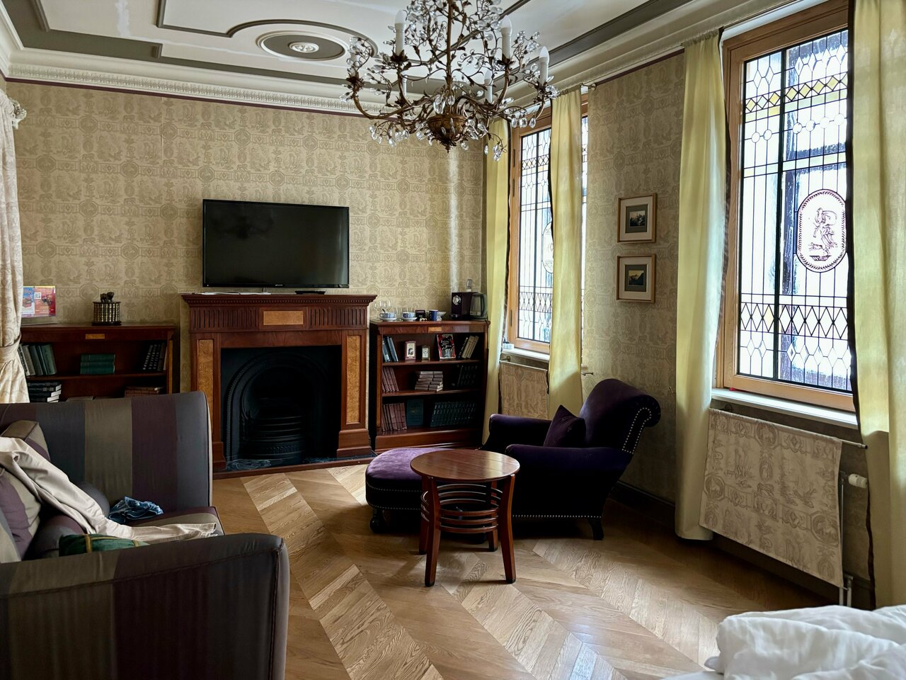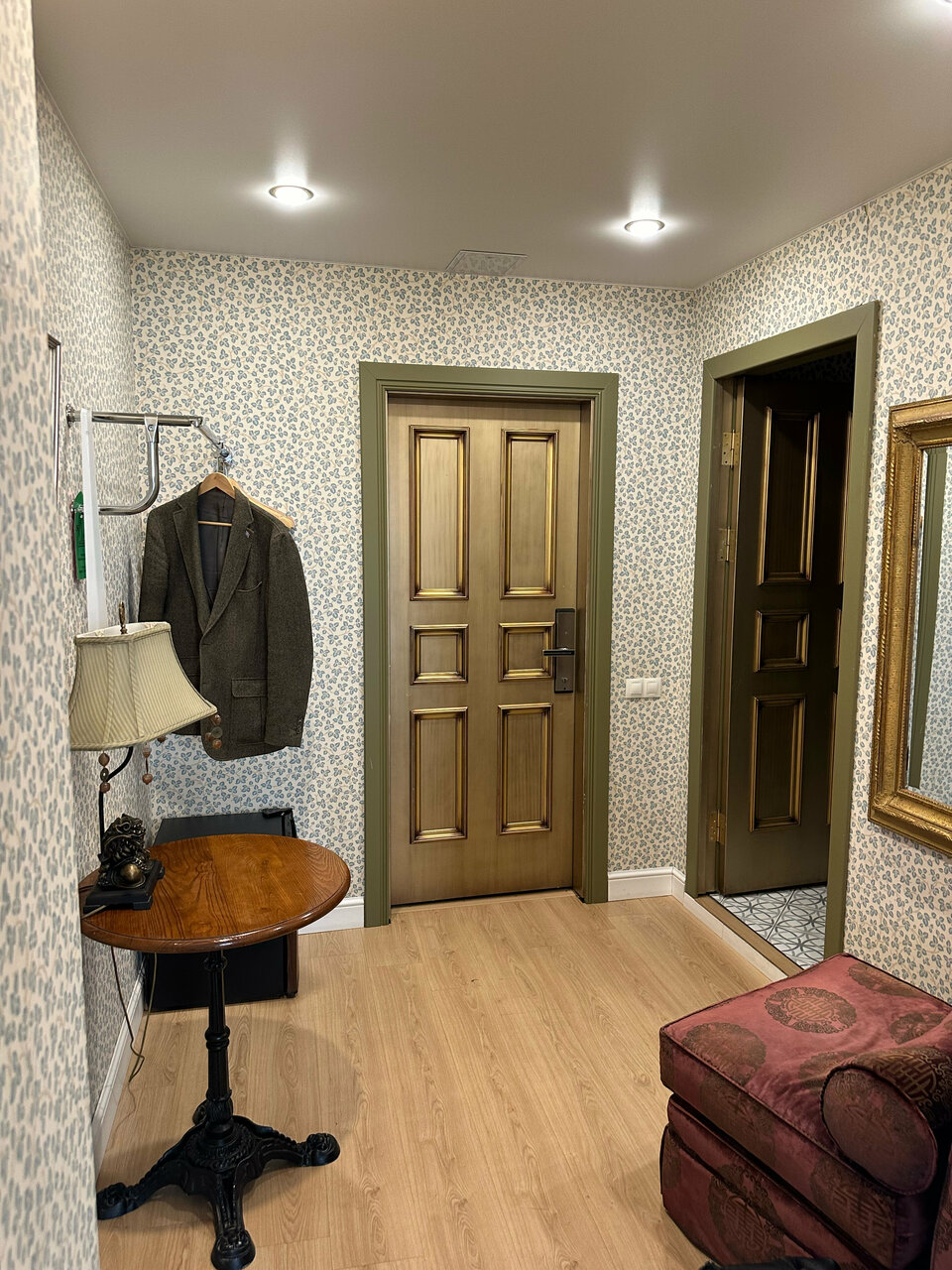 Отель открывается с электронного замка, никто вам не надоедает. Шикарная входная группа, внутри лифт и красивые интерьеры в английском стиле. Каминный номер большого размера, все есть вплоть до бритвы, халаты и полноценная ванная. Тут есть на 4-м этаже мезонин, где можно позавтракать.