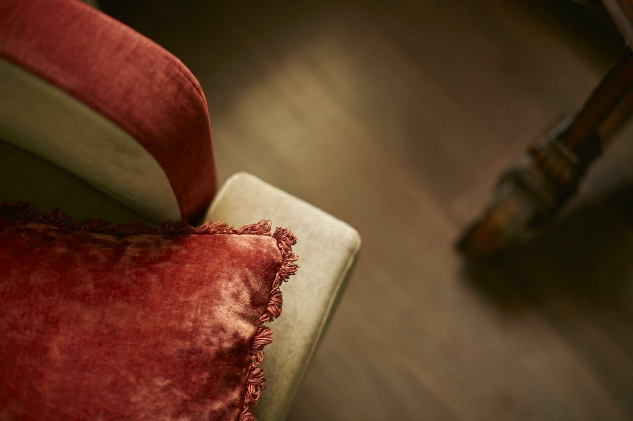 Просторный номер 40 м2 с прихожей, собственной ванной комнатой и спальней.Особенное настроение создает зона камина с библиотекой и изящной софой с бархатной обивкой. Также в номере есть комфортный диван для отдыха.