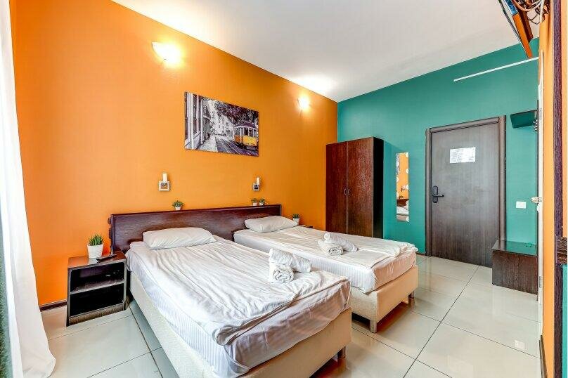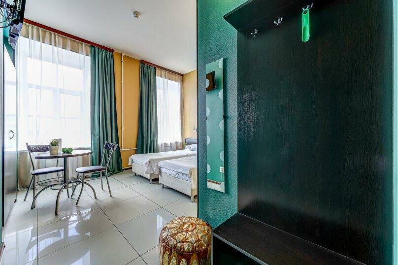 Номер чистый. Заселение по телефону. В номере душевая и туалет. Из допопций чай, кофе, холодильник. От метро 15 метров. При открытом окне реально очень шумно от проезжей части и от кафе под окном. Дополнительный насос канализации тоже шумно работает, но только когда вы пользуетесь коммуникациями.