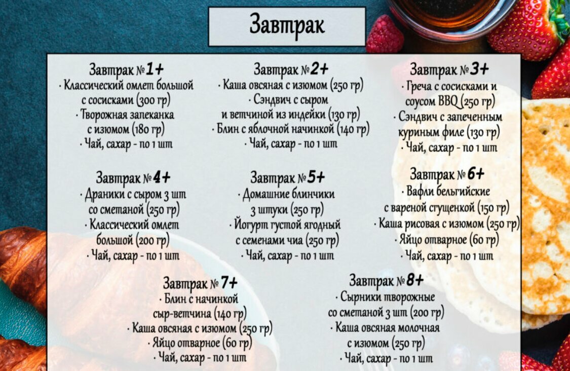 - Вкусные завтраки (разнообразие вариантов).