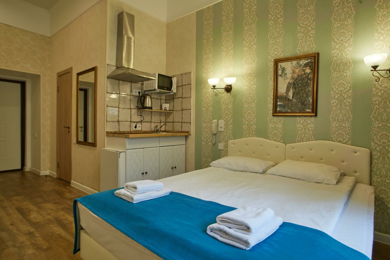 Уютные номера площадью имеют несколько дизайнерских решений, стены украшены репродукциями картин. Все номера для некурящих, оснащены мини-кухней, сан. узлом с душем, феном и бесплатными косметическими принадлежностями.