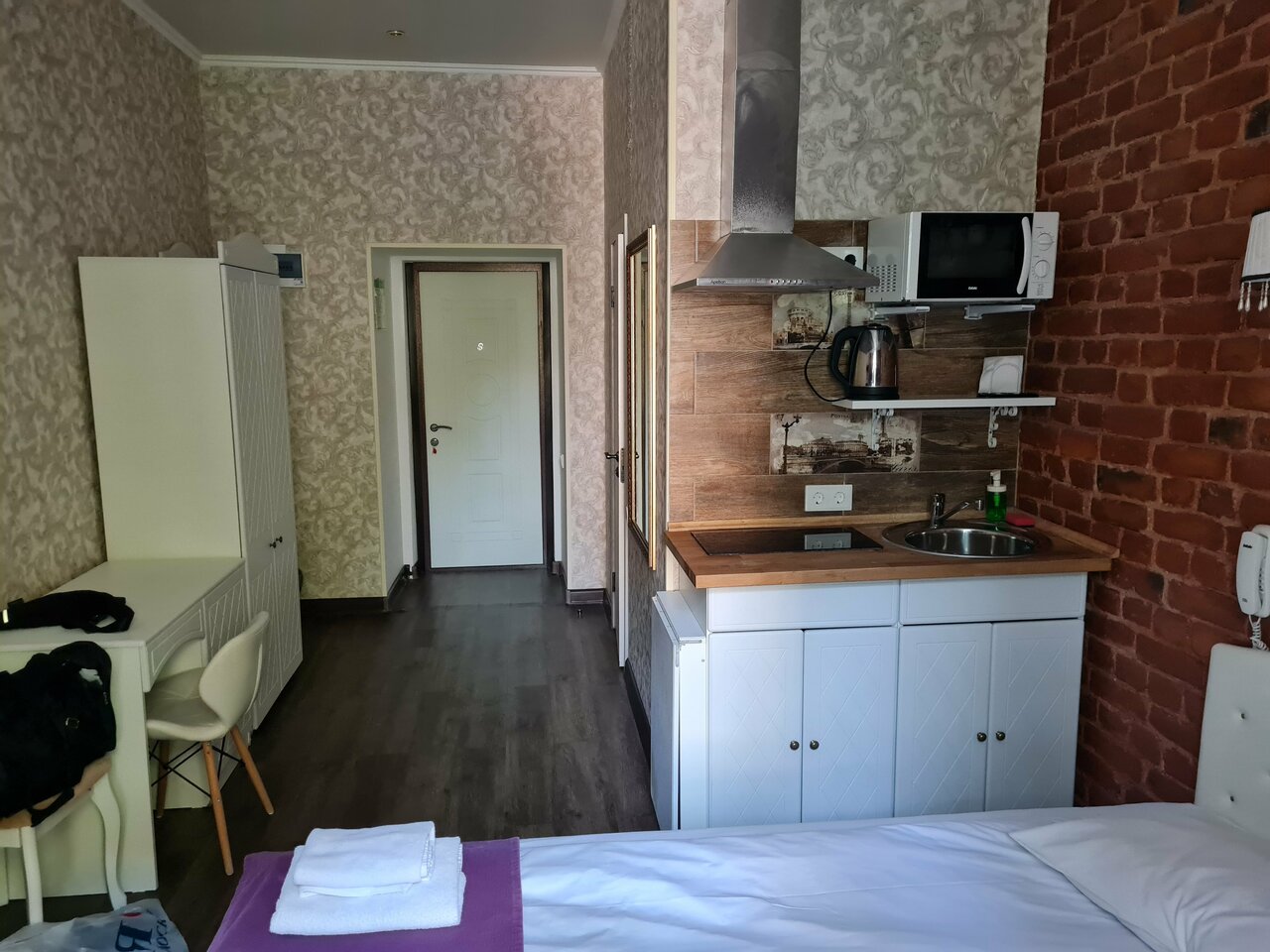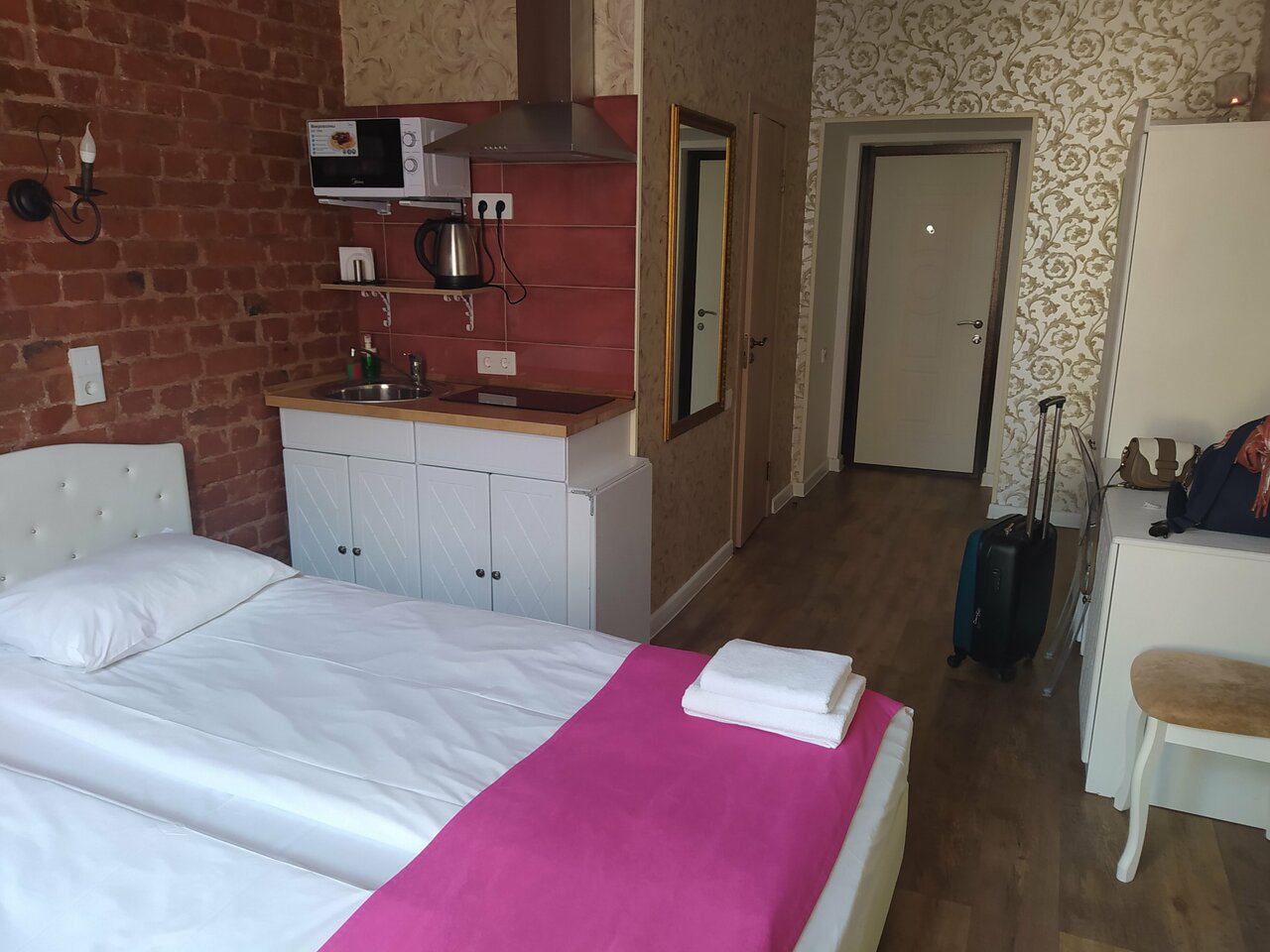 Вчера вернулись из Санкт -Петербурга, проживали в данном отеле. Отличный отель, чисто ,спокойно,по домашнему . С первых минут девочки на ресепшен проявили понимание, заселили нас через 1 час после оформления, т.к мы прилетели очень рано, а заселение только в 14:00 , заселили как только освободился номер. В номерах уборка каждый день, полотенца меняют при каждой уборке , за неделю проживания даже постельное белье 3 раза поменяли ( мы не просили ). Мини кухня в номерах есть, вся техника исправная , кухонные принадлежности есть. На этаже кулер ,стаканчики есть всегда ,стиральная машина, сушилка для белья ,гладильная доска ,кстати стиральный порошок дали бесплатно на ресепшн . Питание ( завтраки ) без изысков, но все вкусно ,голодными не были . Вообщем мы очень довольны этим отелем . Дарья ,Нижний Новгород.