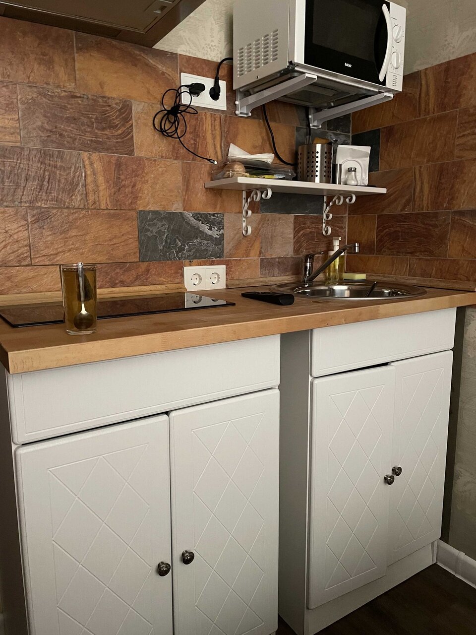 - Ежедневная уборка и смена полотенец.; Оригинальное оформление.; Тихий район.; Мини-кухня в номерах.; Возможность готовить в номере.