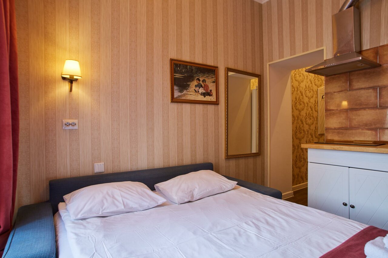 Небольшой двухместный номер с типом кровати диван-кровать. Все комнаты для некурящих, оснащены мини-кухней, сан. узлом с душем, феном и бесплатными косметическими принадлежностями.