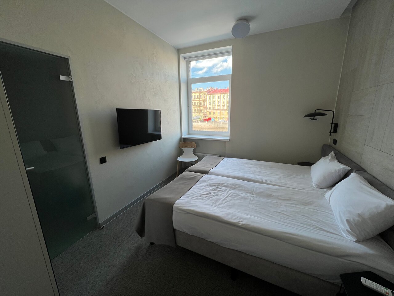 Очень уютный отельчик, со свежим ремонтом, со вкусными завтраками, милым персоналом. Наш номер(стандарт) с видом на Фонтанку был очень маленьким. В, принципе,были к этому готовы. Кровать с хорошим матрасом, в номере все новенькое, по-минимуму, но есть. Не очень понравился только санузел- вечная сырость на полу из-за конструкции слива и размера помещения. Не мешало бы добавить пару полочек в ванной и крючков и плечиков ,а то тяжеловато размещаться-верхнюю мокрую одежду вообще негде развесить. Немного напрягла и вентиляция в номере-окна не открываются, а приточка странно организована. В итоге-душновато, не всем ведь нравится с кондиционером жить постоянно. В целом рекомендую, для заявленных 3-х звезд очень достойно!