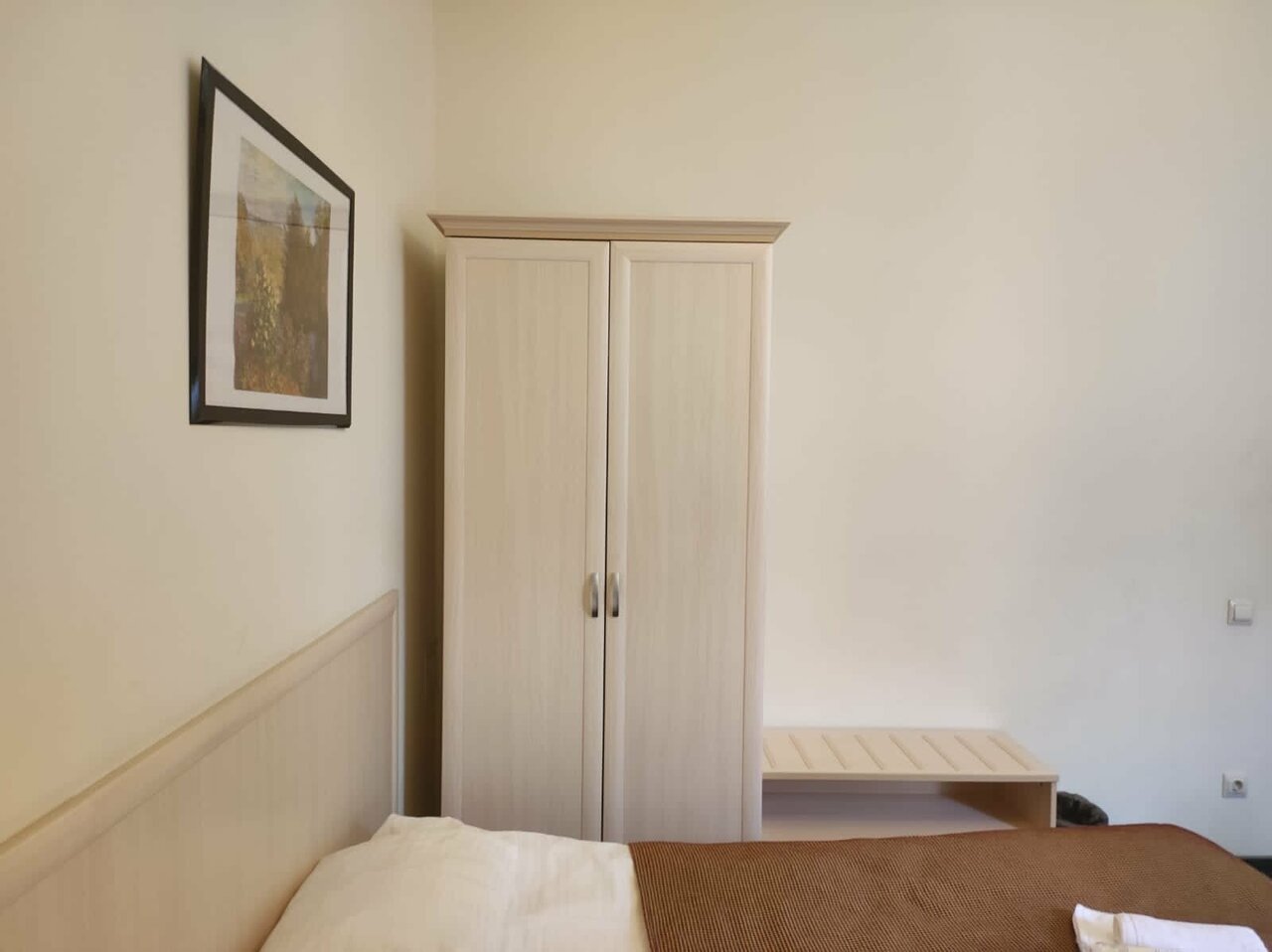 Отличное расположение, очень близко к центру. В номере есть все необходимое полотенца, тапочки, косметический набор в ванной комнате. Номер чистый, уютный. Кухня общая.