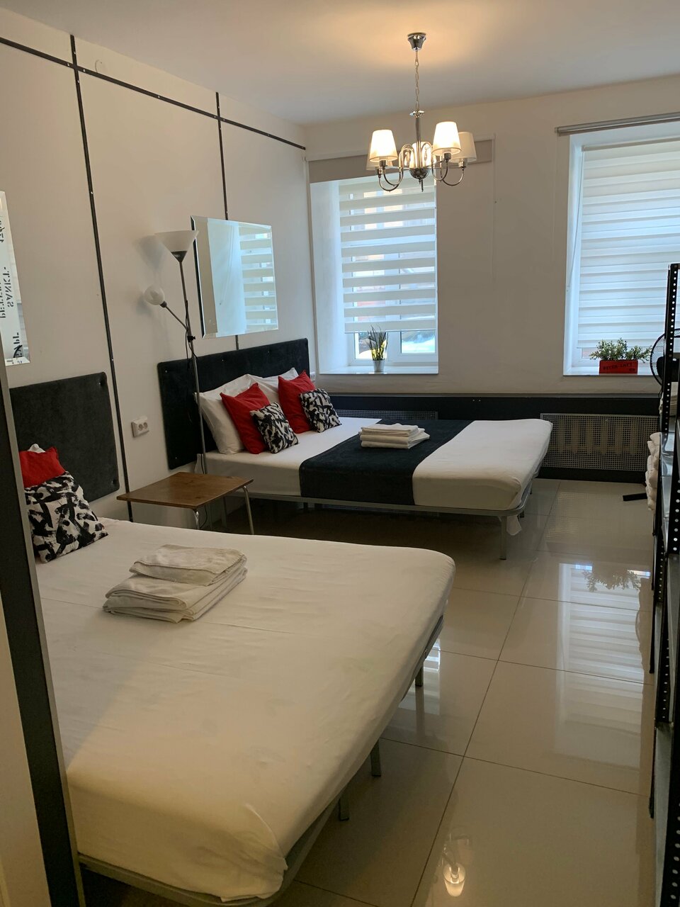 Прекрасное место для гостей Санкт-Петербурга. В центре и не дорого. Рядом огромное количество достопримечательностей. Внутри уютные квартиры с окнами во двор.