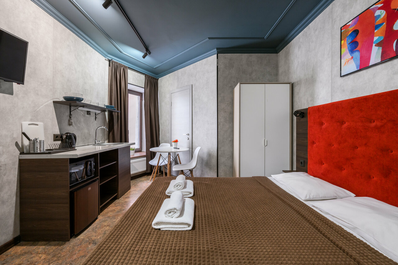 Очень хорошие уютные апартаменты: свежий ремонт, есть небольшая кухня и все необходимое. Хорошее соотношение цена/качество. Находятся в центре, рядом метро. Персонал на 5+, быстро откликаются и помогают решить возникающие вопросы. Спасибо, буду в городе — обязательно остановлюсь у Вас вновь.