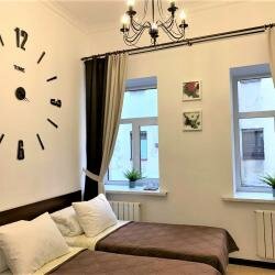 Останавливались в апартаментах по адресу Маяковского, 6. Самостоятельно заселились. Удобные апартаменты с кухней, стиральной и сушильной машиной, феном. Комната просторная, спальное место для взрослых отделено прекрасной перегородкой. Дети спали на диване. Апартаменты просторные. Есть кондиционер, поэтому не жарко. Чисто. 5этаж по узкой и крутой лестнице. Удобные широкие подоконники, вид во внутренний дворик. Достаточно тихо. Метро и автобус близко. Приедем ещё. Нам очень понравилось!