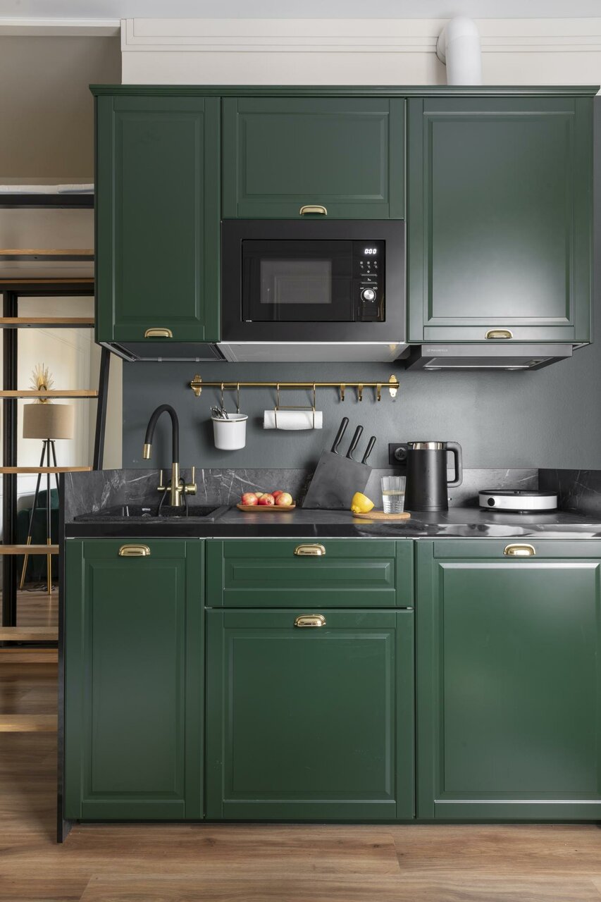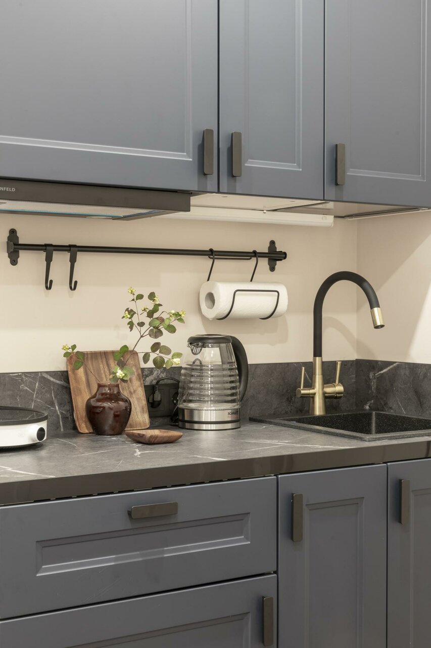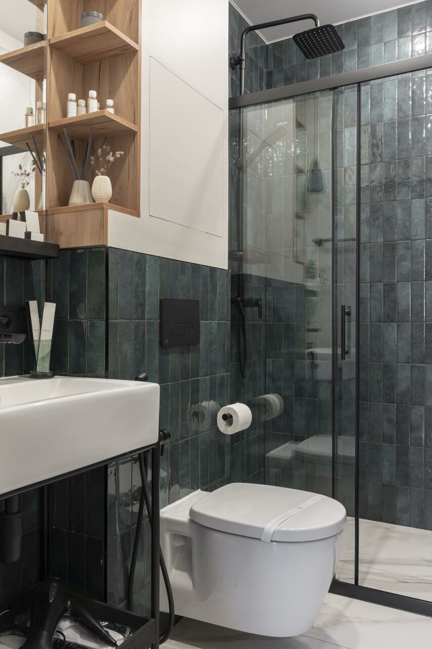 Студио с мини-кухней и собственной ванной комнатой с душевой или ванной.