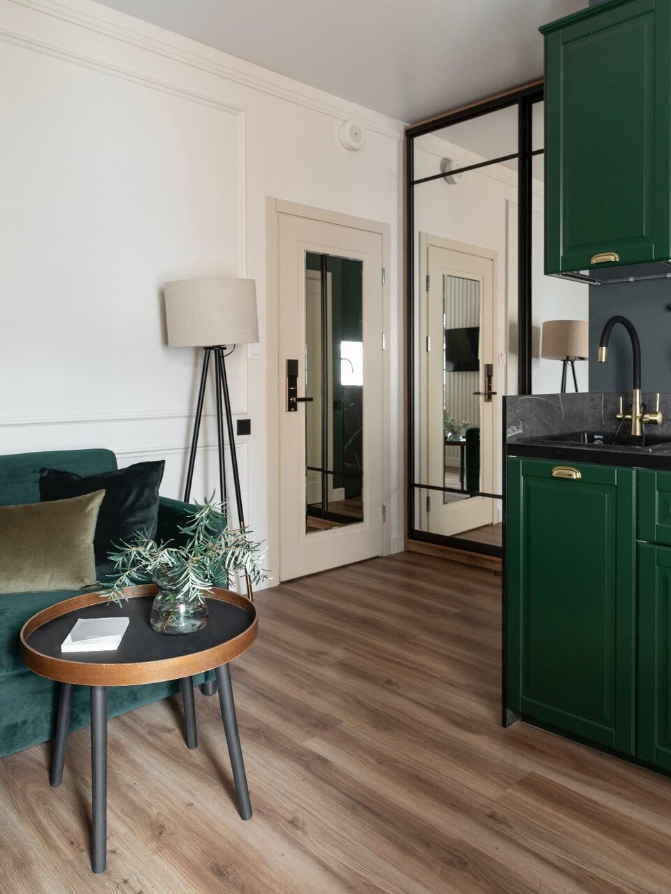 Замечательное место! Приветливый персонал. Шикарные номера — сьюты, состоящие из кухни-гостиной и спальни. В кухне все необходимое, включая капельную кофемашину с запасом молотого кофе, посудомоечную машину, микловолновку, большой холодильник, штопор и чеснокодавилку. Имеется встроенный фильтр очистки водопроводной воды. В номере два телевизора, стиральная машина, утюг и гладильная доска. Очень удобная кровать с огромным одеялом и комфортными подушками (что является редкостью). Кроме этого, существует меню подушек. В номере масса полотенец, махровые халаты, тапочки, принадлежности для душа не в пакетиках, а в удобных флаконах. Чистота идеальная. По всему заметно трепетное отношение хозяев к своим гостям. Окна выходят во внутренний питерский дворик-стакан, что тоже создает особенную атмосферу для гостей. Проживали вдвоем с супругой, довольны бесконечно.