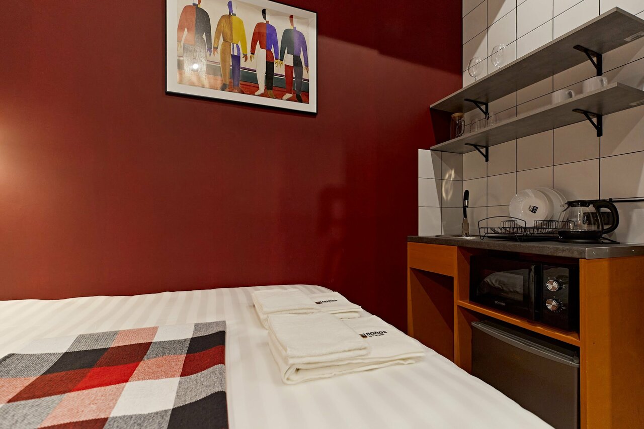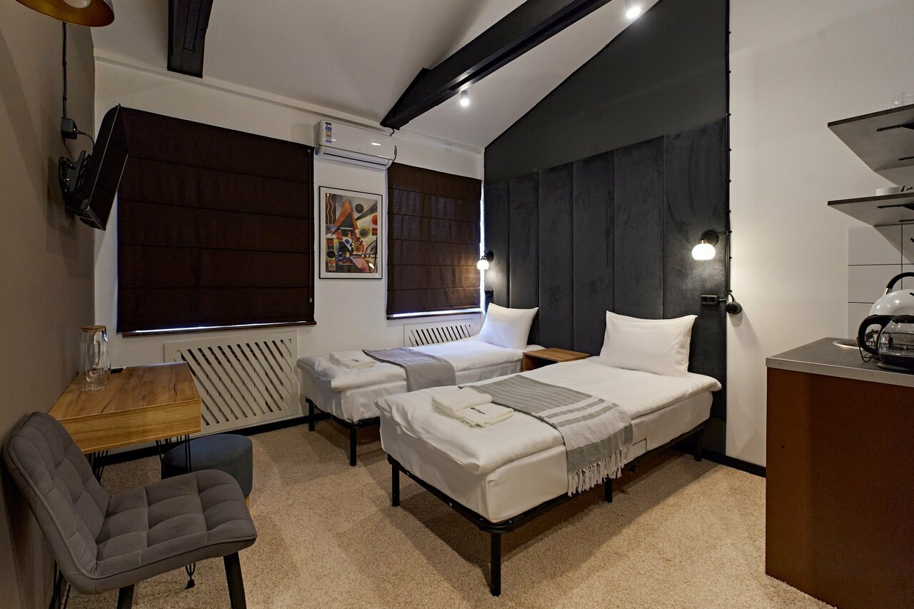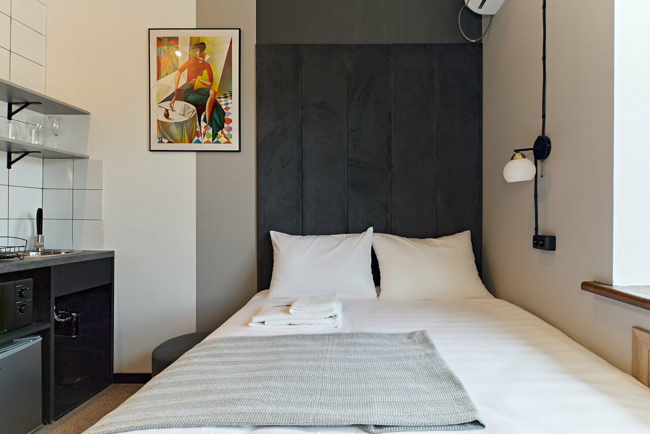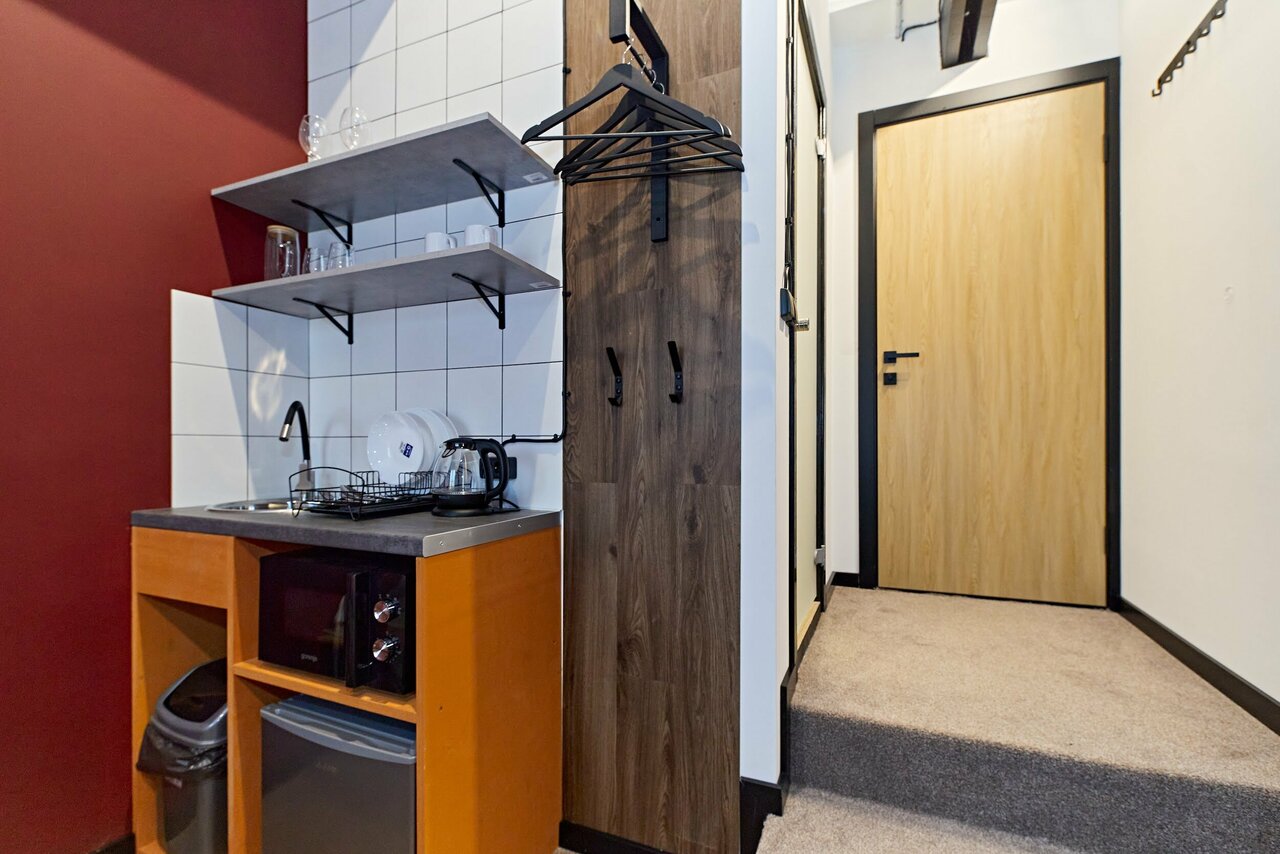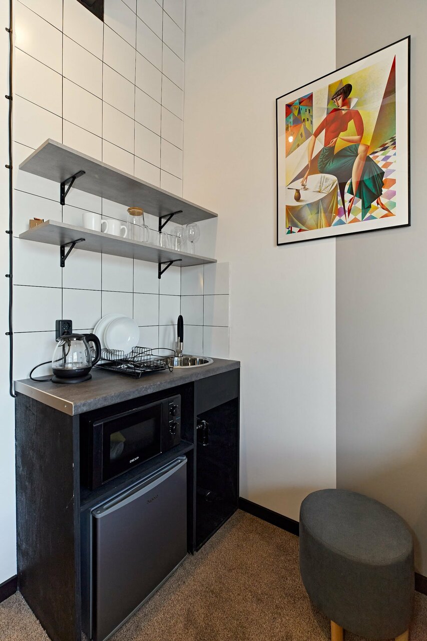 Нам понравилось! Мини-апартаменты, недавно открылись. Вход со стороны музея фотографии и школы. Заселение самостоятельно. Все необходимые принадлежности есть в номере. Дополнительные — в коридоре. Утюг, стиралка в коридоре. Кровати везде двухспальные. В номере фен, микроволновка, холодильник, мойка, посуда. Нет шкафа. Есть стол, пуф, тумбочка-этажерка, ниши под кроватью. Есть сомнительные дизайнерские решения типа мебели самодельной из крашеной фанеры. Уборка по запросу. Связь с ‘портье’ по ватсапп, отвечают быстро, все проблемы решили.