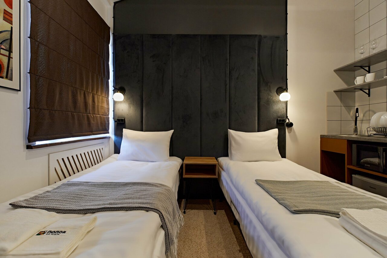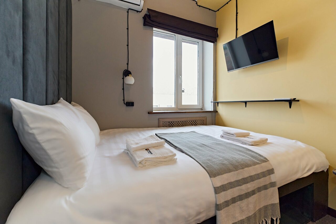 Мы отдыхали в данном отеле 4 ночи. Выбрали по фото комнату. На фото выглядит намного больше 🙂 Несмотря на размеры — действительно есть все необходимое. ТВ, микроволновка, холодильник, кондиционер, посуда на 2 персоны. Набор полотенец и предметов гигиены есть. Шумоизоляция отсутствует :). Слышно как ходит люди по коридору и брачные игры тоже :D. Чисто относительно. -1 т.к. уборка не тщательная: пыль, ватная палочка б/у и грязная штора в ванной. Общение с адм. через мессенджер. Отель находится в удобном месте. Пешком до Эрмитажа — час прогулки 🙂 Думаю приеду сюда еще раз, т.к. близко и переночевать между экскурсиями норм.
