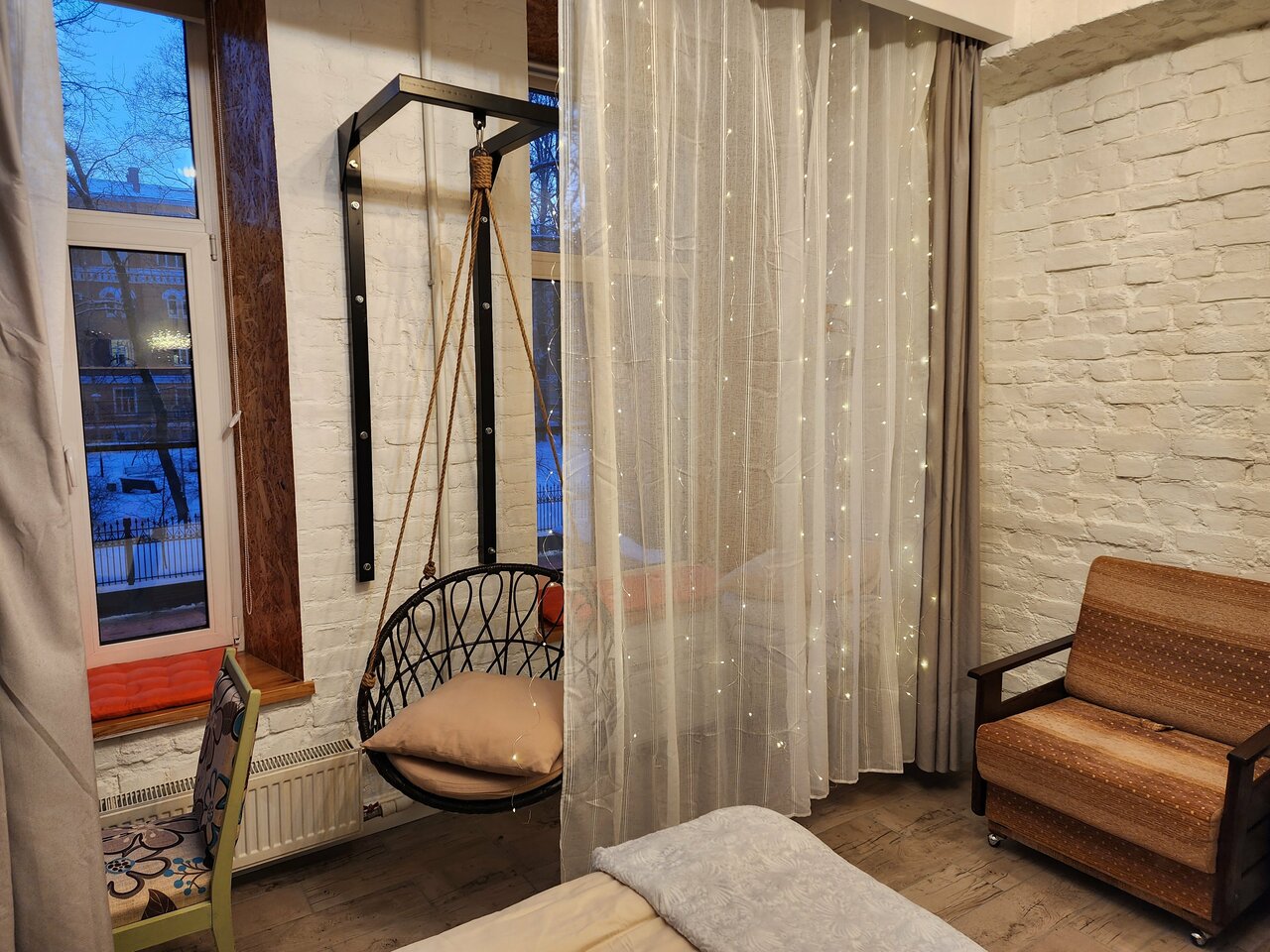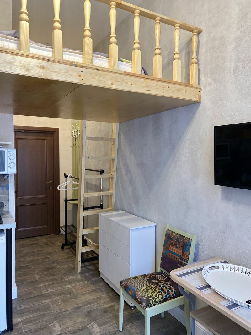 Все на хорошем уровне, однако те, кто боится высоты, лучше не снимать такие варианты. Кровать под потолком.