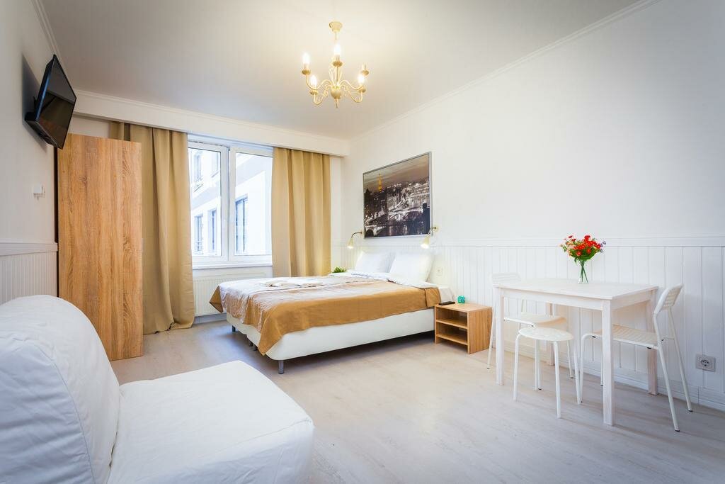 Получил больше,чем ожидал. Расстояние пешком от Московского вокзала 15 мин ходьбы. Новострой, внутренний двор закрывается на замок ( ключ выдают), чужие не ходят). В номере чистота и порядок, есть всё необходимое для комфортного проживания (утюг, микроволновка, сушилка, плита, холодильник, шампунь и тд,и тп). Администратор пошёл на встречу по всем вопросам: раньше заселиться,чем положено, забрать вещи позднее,чем нужно по правилам и тд. Я был с дороги, нужно было постирать вещи,идти в магазин было лень) порошок был дан! За относительно не большую сумму,получил уютную однокомнатную квартиру. Рядом магазины,кафе и тд.Теперь знаю, где буду останавливаться, когда ещё приеду в Питер! Администратору благодарность!
