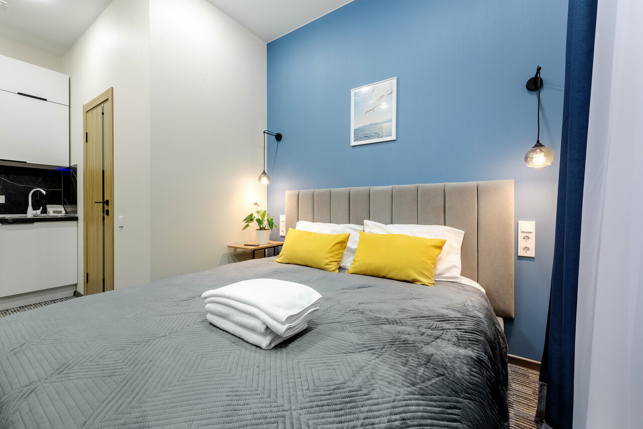 Очень понравилось в отеле, вот прям все все понравилось! Чистота, все новое, запах новой квартиры, белье идеальное, местоположение отеля в 5 мин от метро и в историческом центре города. Вокруг много кафе и ресторанов, поэтому миникухней не пользовались.