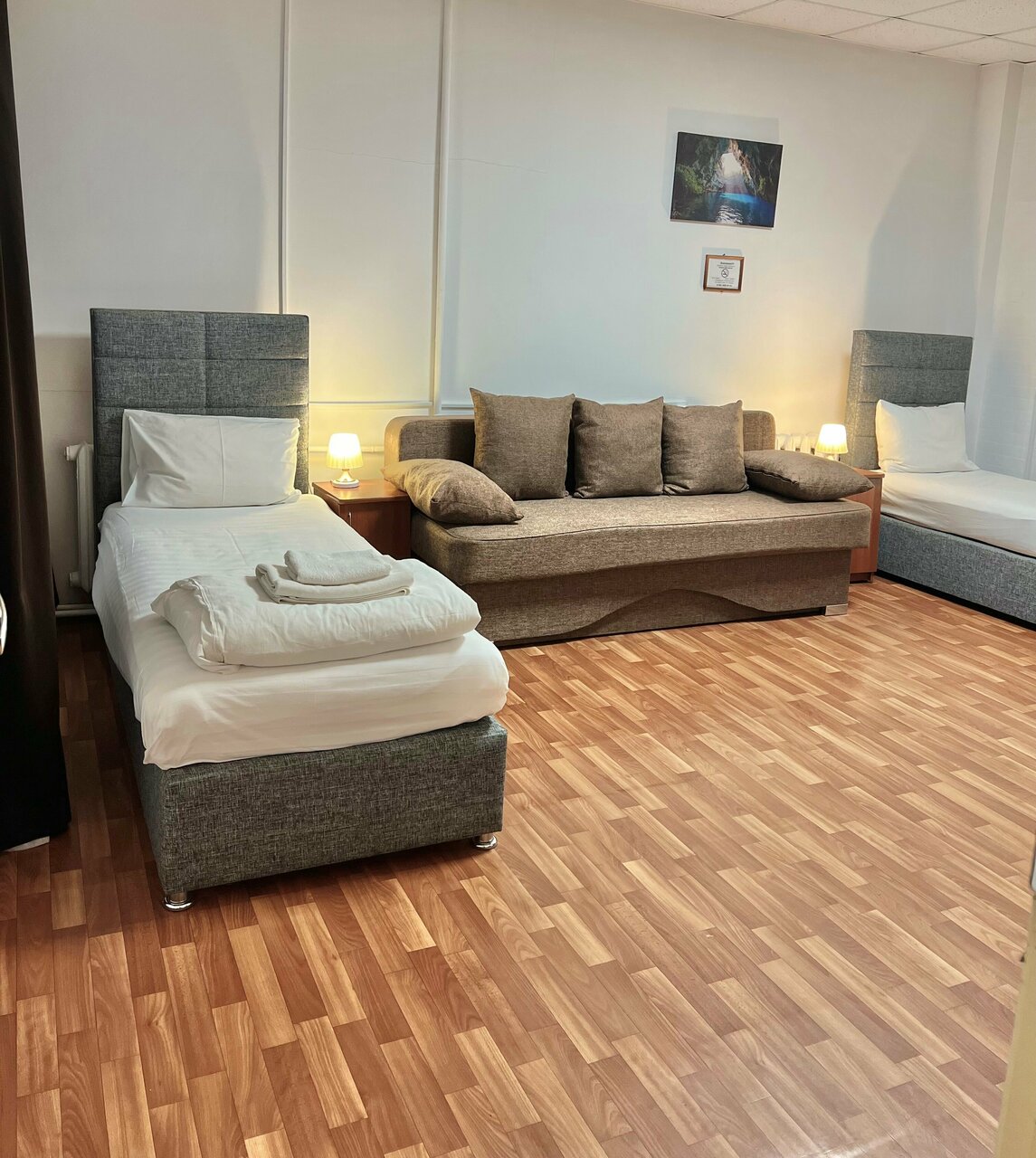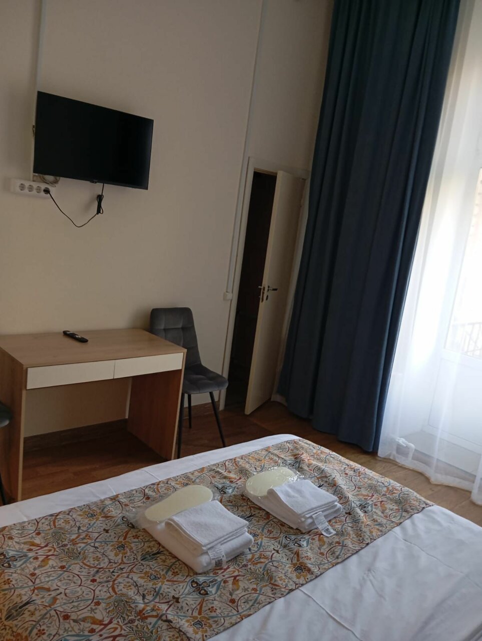 провели там одну ночь и больше никогда не вернёмся. это просто общежитие, которое переделали в гостиницу. если открыто окно, то слышно, как скрипит входная дверь. и в принципе все двери скрипят при открытии и закрытии. душ маленький, неудобно мыться. пол очень холодный, без тапок невозможно ходить. обогревателя нет. комната узкая и маленькая. у телевизора очень бледная яркость, в настройках пытались повысить её, ничего не помогло. бесплатный вай-фай есть, но работает медленно. шкаф узкий и там вообще полка только сверху и снизу. столик в номере только барный (высокий), из-за этого неудобно кушать, пришлось все ставить на тумбочку. возвращаться сюда больше не собираемся. за одну ночь заплатили 3 тысячи, эти деньги совершенно того не стоят. не рекомендуем!