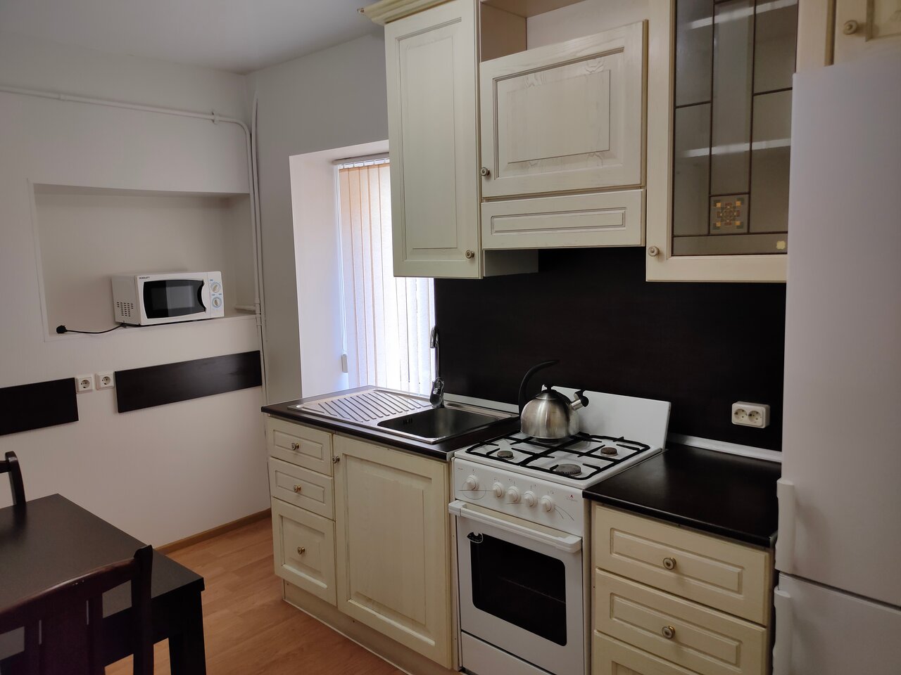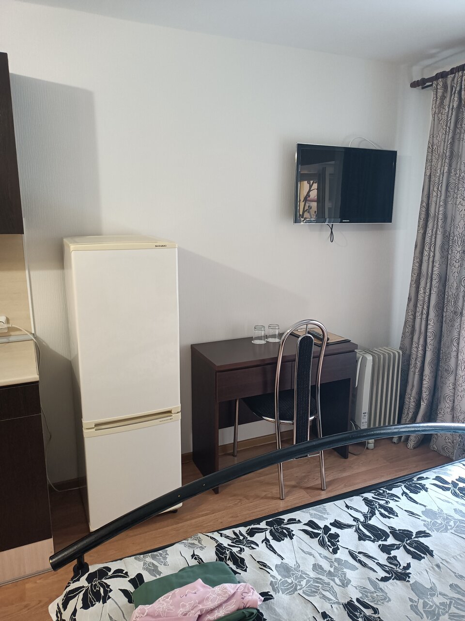Апартаменты с двумя раздельными кроватями, диваном, кондиционером, кухней, подходит для командировок и размещения семьи. До четырех мест. Площадь 25 м.кв.