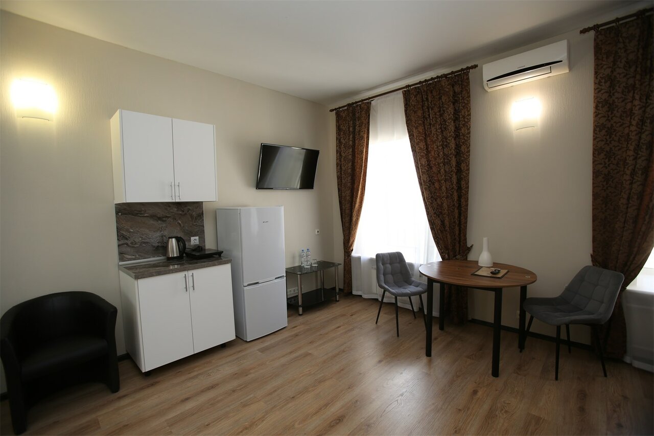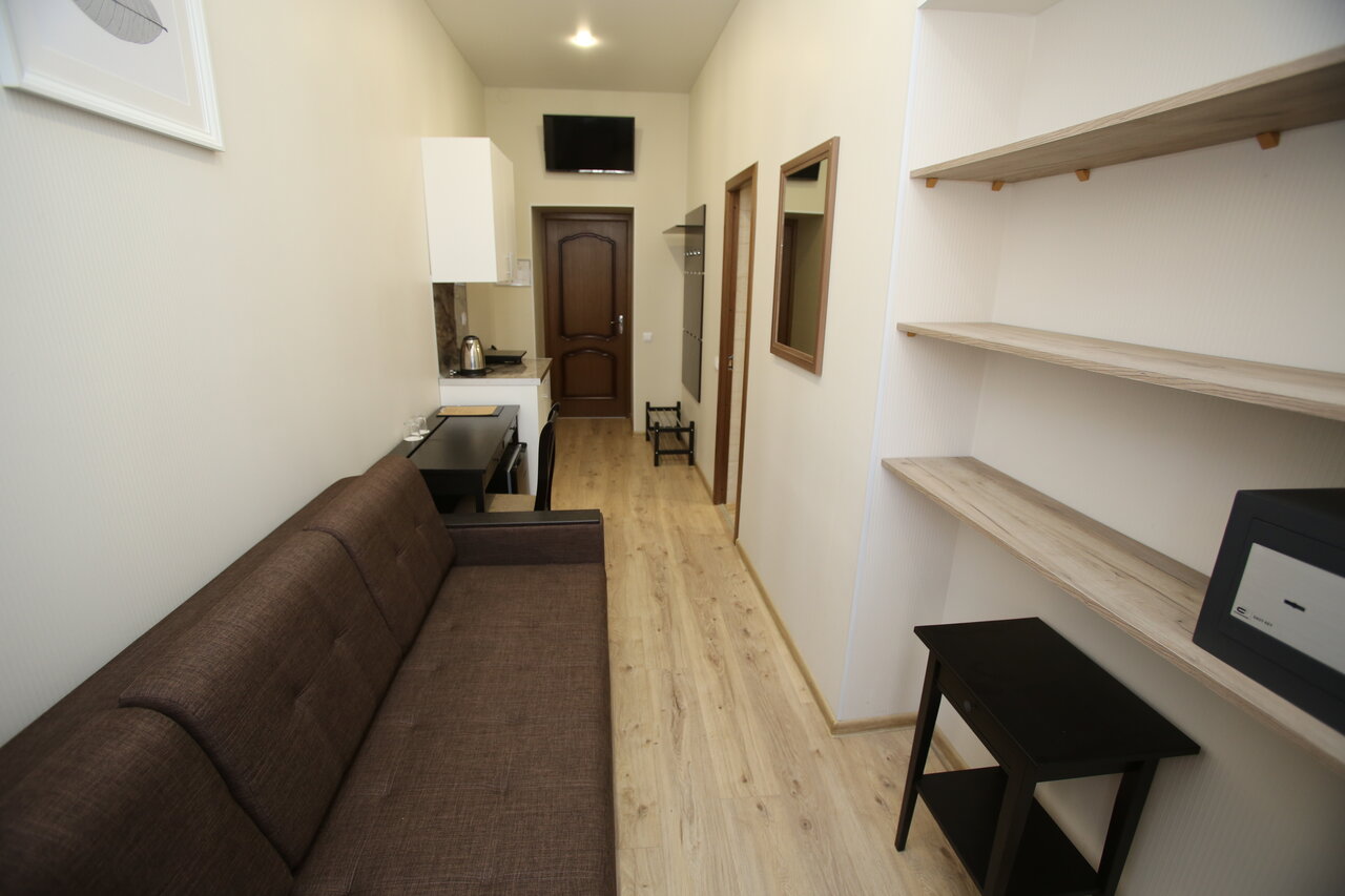 Уютные однокомнатные апартаменты расположены на Малой Морской ул. д. 9 в тихом закрытом дворе в самом центре города. Апартаменты включают в себя: спальню, кухню и ванную комнату. Площадь номера 22кв.м.