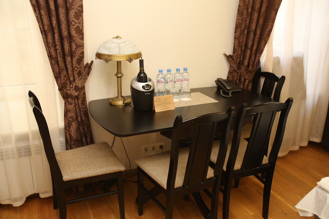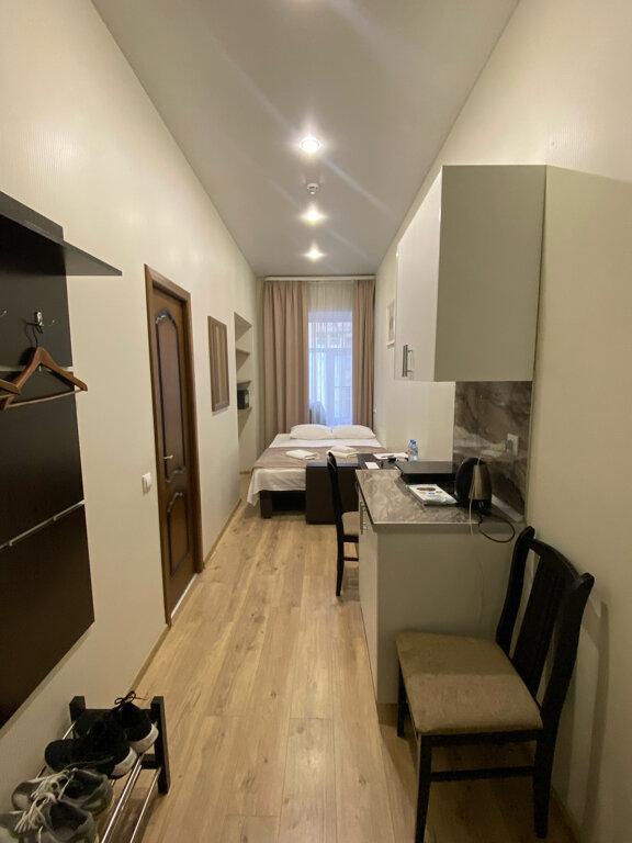 Уютный двухместный номер с кухней. В номере: 1 двуспальный диван, телевизор, телефон, туалетный столик, сейф, бесплатный Wi-Fi Интернет, кухня, керамическая плита, холодильник, чайник. Площадь 12 кв.м.