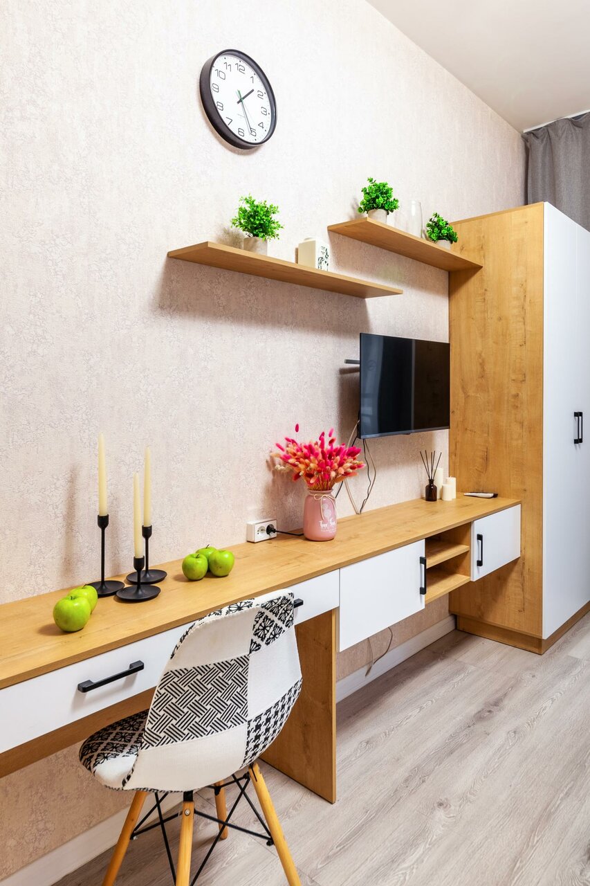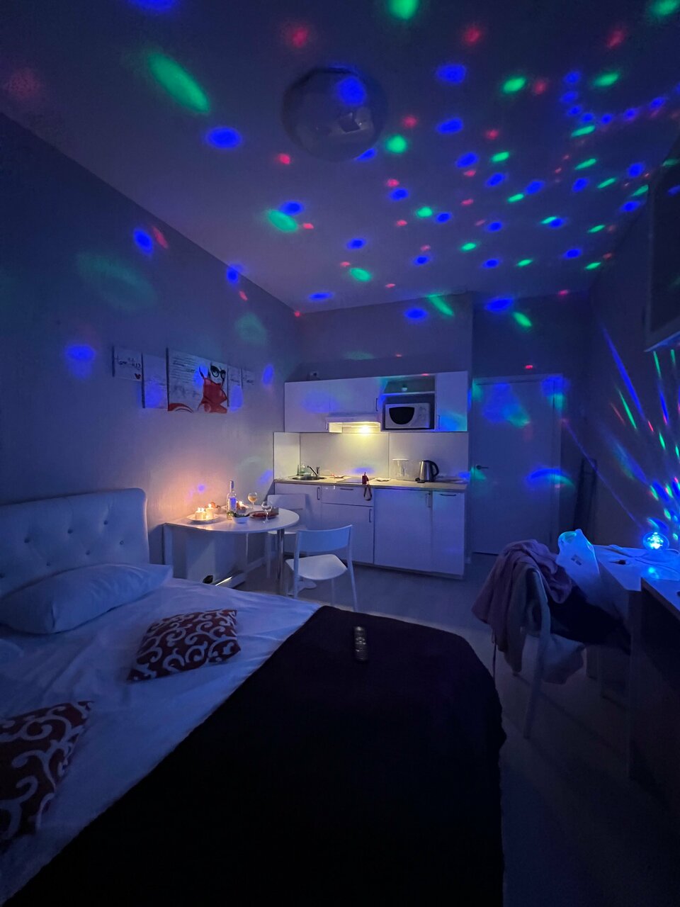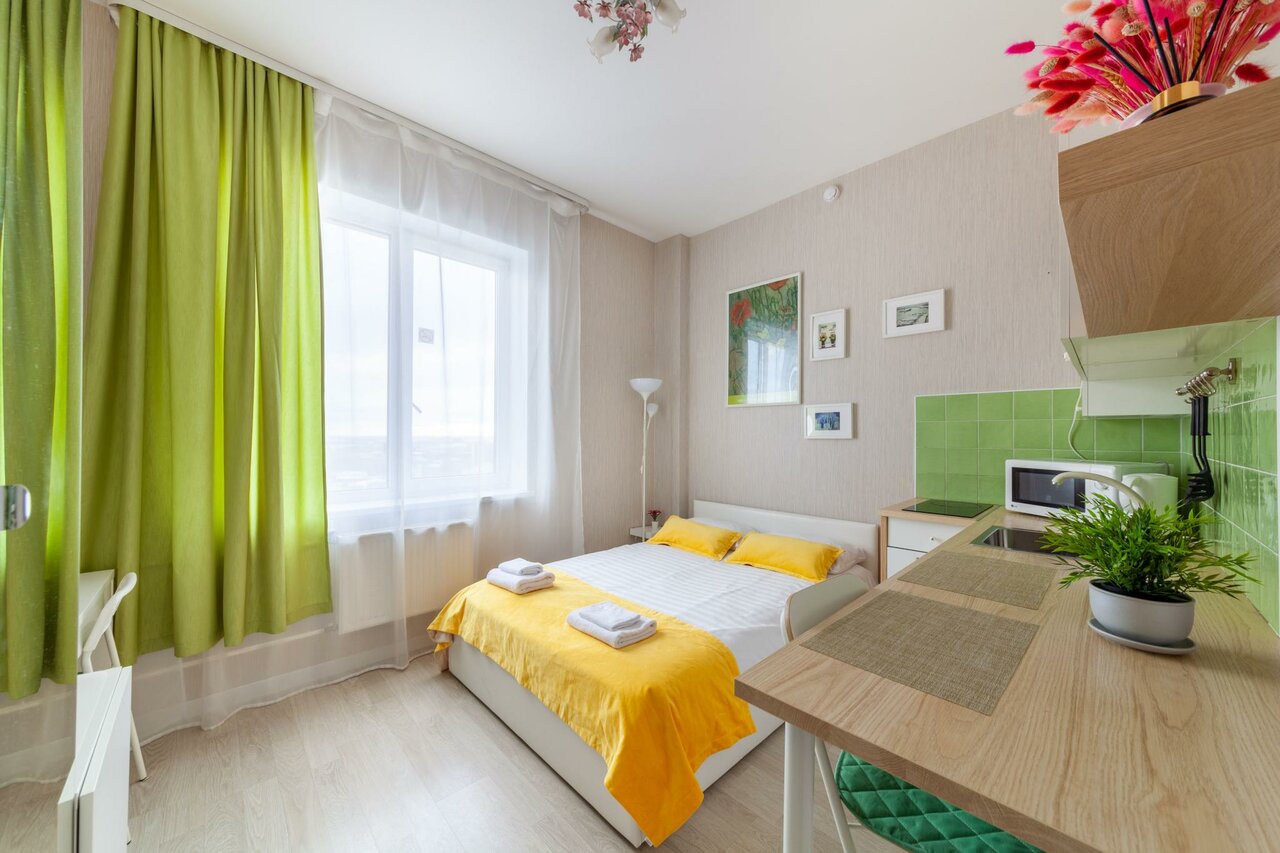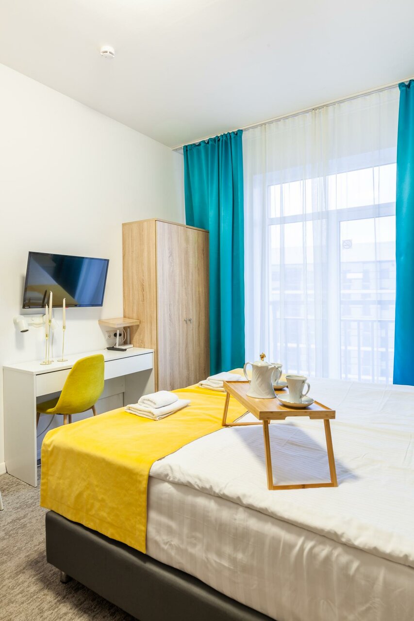Это первые апартаменты, где нам понравилось все! Красивый вид, где каждый вечер был закат, вид на наш полюбившийся парк.. В номере был телевизор с смарт тв, что огромный плюс! 19 этаж.. Столовые приборы, посуда нужная. Для завтраков самое то! Была стиралка, много полочек, шкафчиков, утюг, доска для утюга, фен, мыло, средство для посуды, тряпочки, полотенца, сушилка, чайник, холодильник, свч, письменный стол, вай фай и кровати вместе соединенные с классным матрасом, на котором максимально удобно! Теперь домой хотим такой же матрас Парковка бесплатная вокруг домов была, но не сразу найдешь место) платный паркинг под домом, где ночь 400 стоила) Была уборка согласованная. Администраторы помогали со всеми вопросами!) фото комнаты нет, она была у нас с оранжевыми подушками и зеленым стулом за письменным столом.