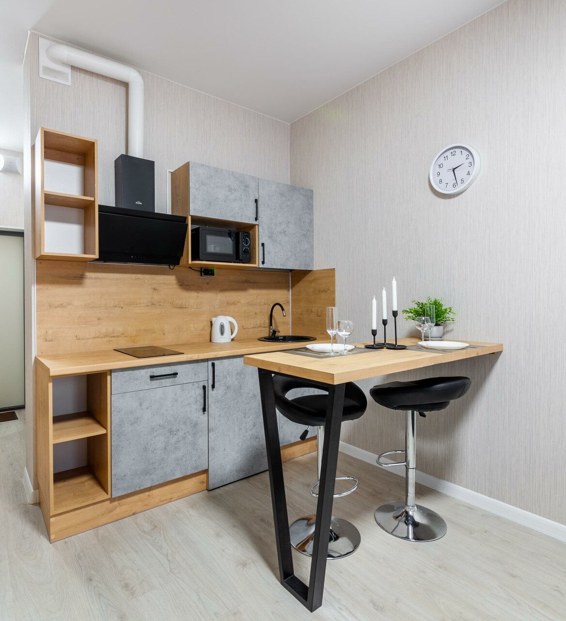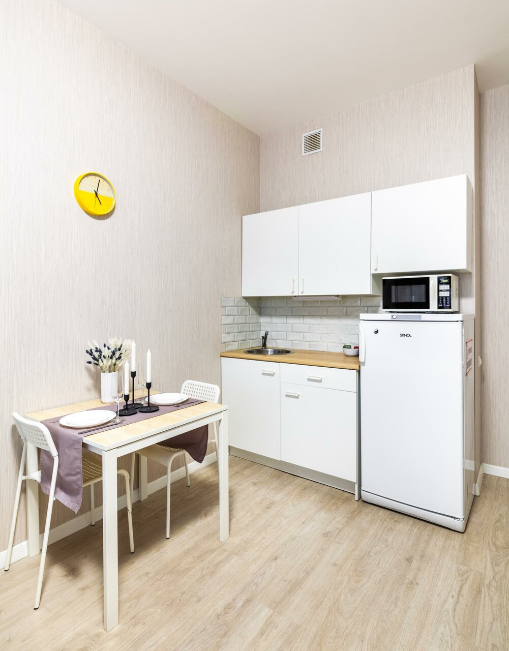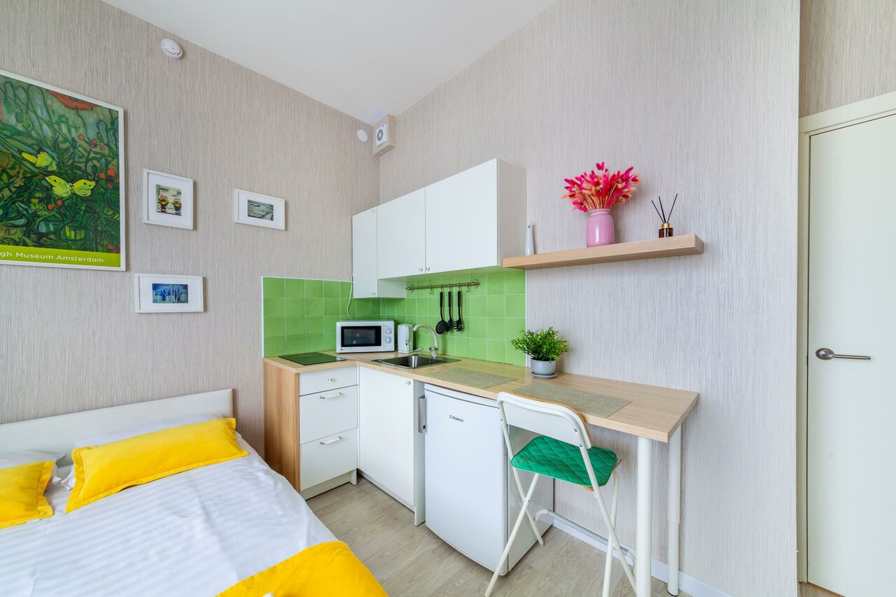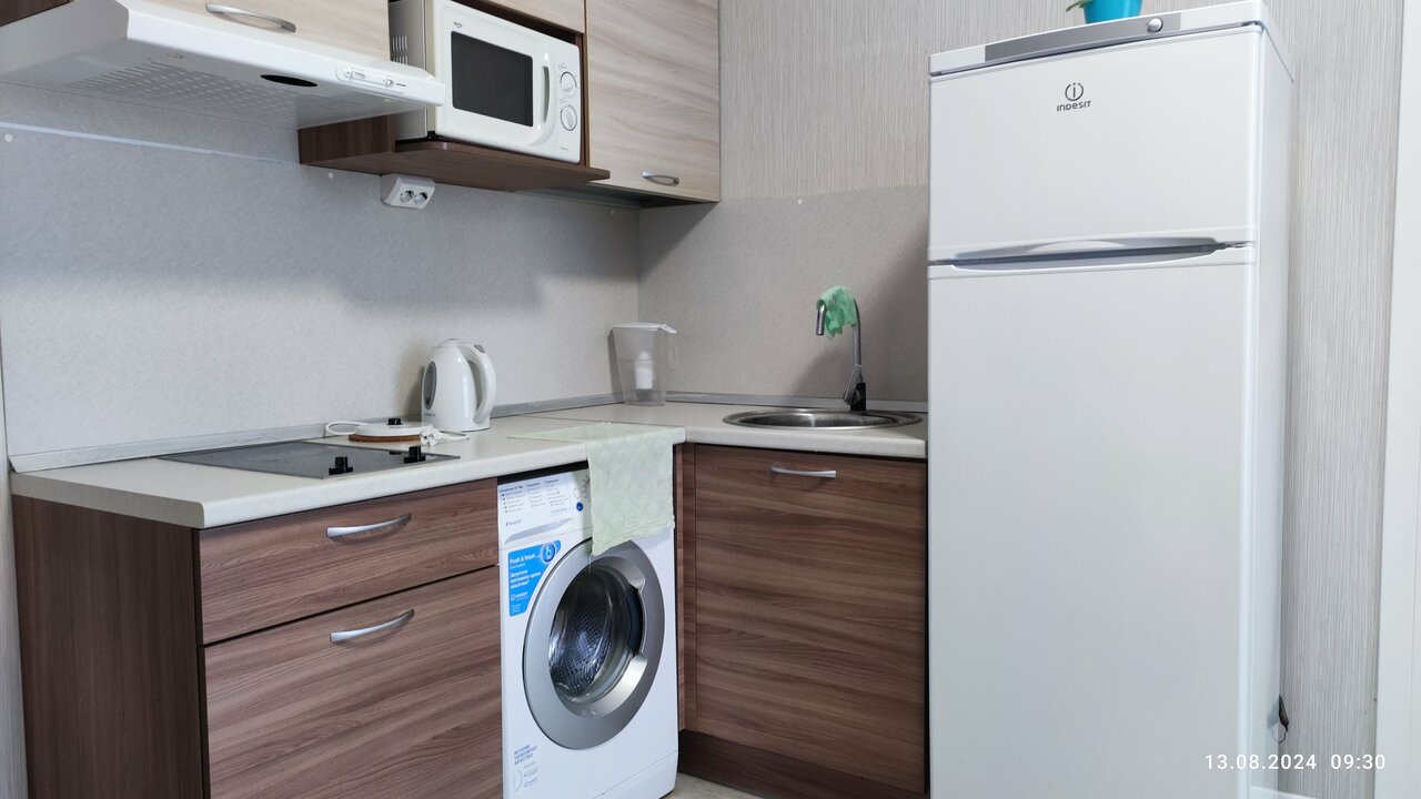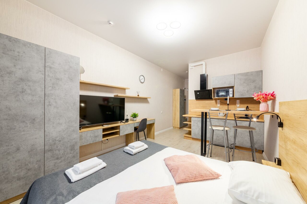 Останавлилась перед ночным рейсом, удобное расположение, внизу есть вкусвилл и кофейня. Кухня и ванная в полной комплектации.