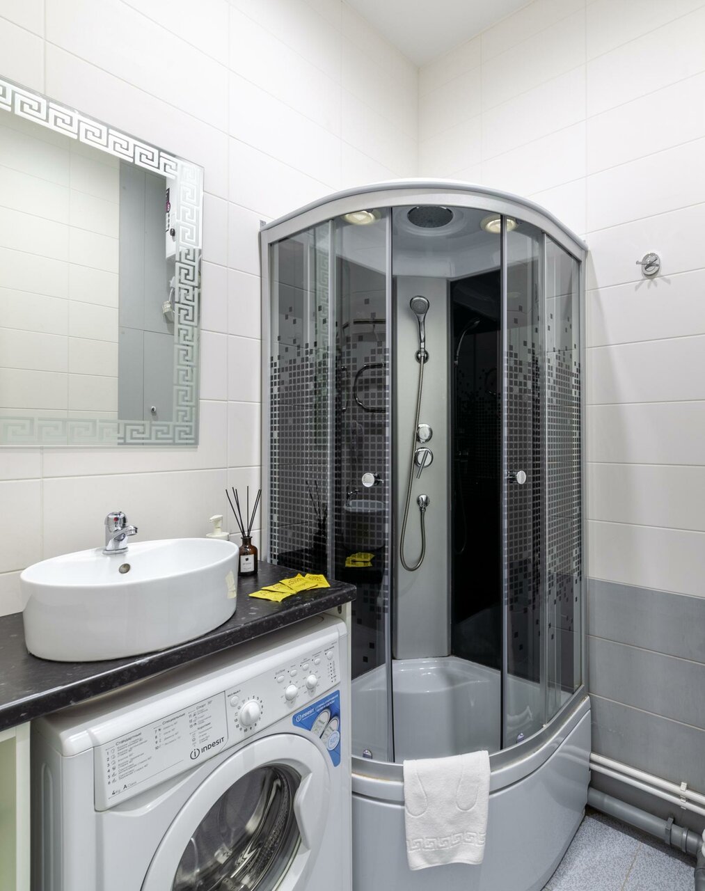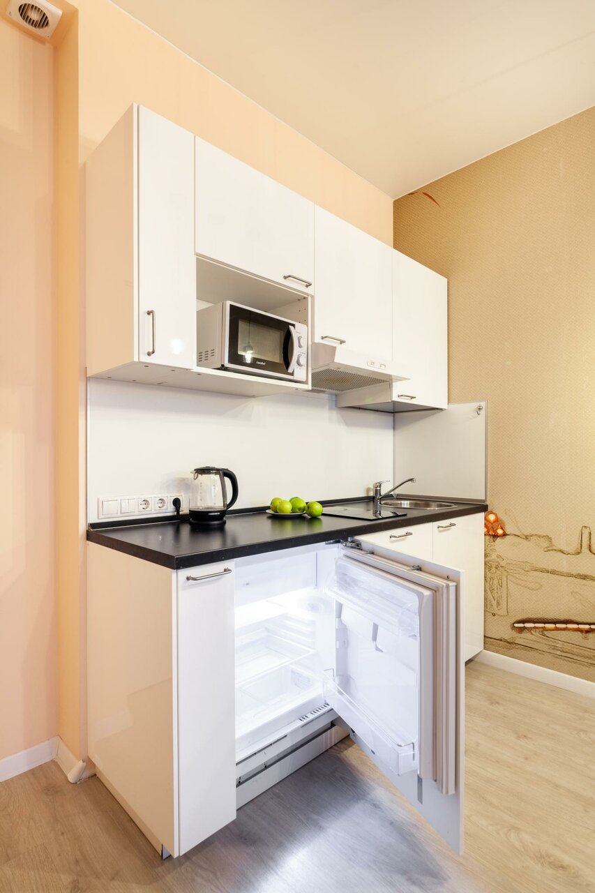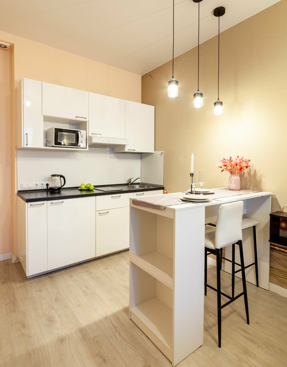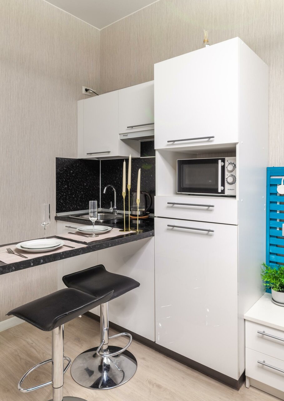 Останавлилась перед ночным рейсом, удобное расположение, внизу есть вкусвилл и кофейня. Кухня и ванная в полной комплектации.