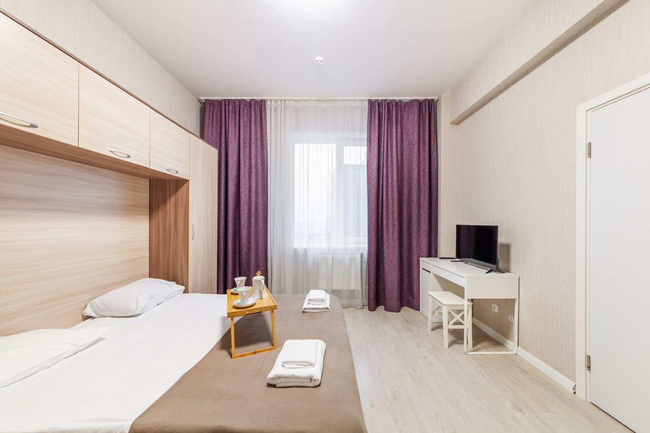 Удобное расположение. Недалеко от съезда с платной дороги. На 0 этаже паркинг. Оставляешь машину и поднимаешься в апартаменты. Снимали номер на 8 этаже. Обслуживание хорошее. Персонал приветливый. Чисто. Из минусов: 1.в номере нет кофе. 2.нет зубной пасты. 3. периодически появляется запах гари или дыма. Мы предположили , что запах из паркинга. Несморя на минусы, ставлю 5. И планируем еще там останавливаться.