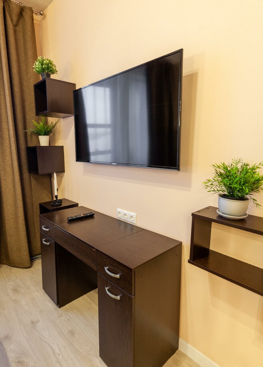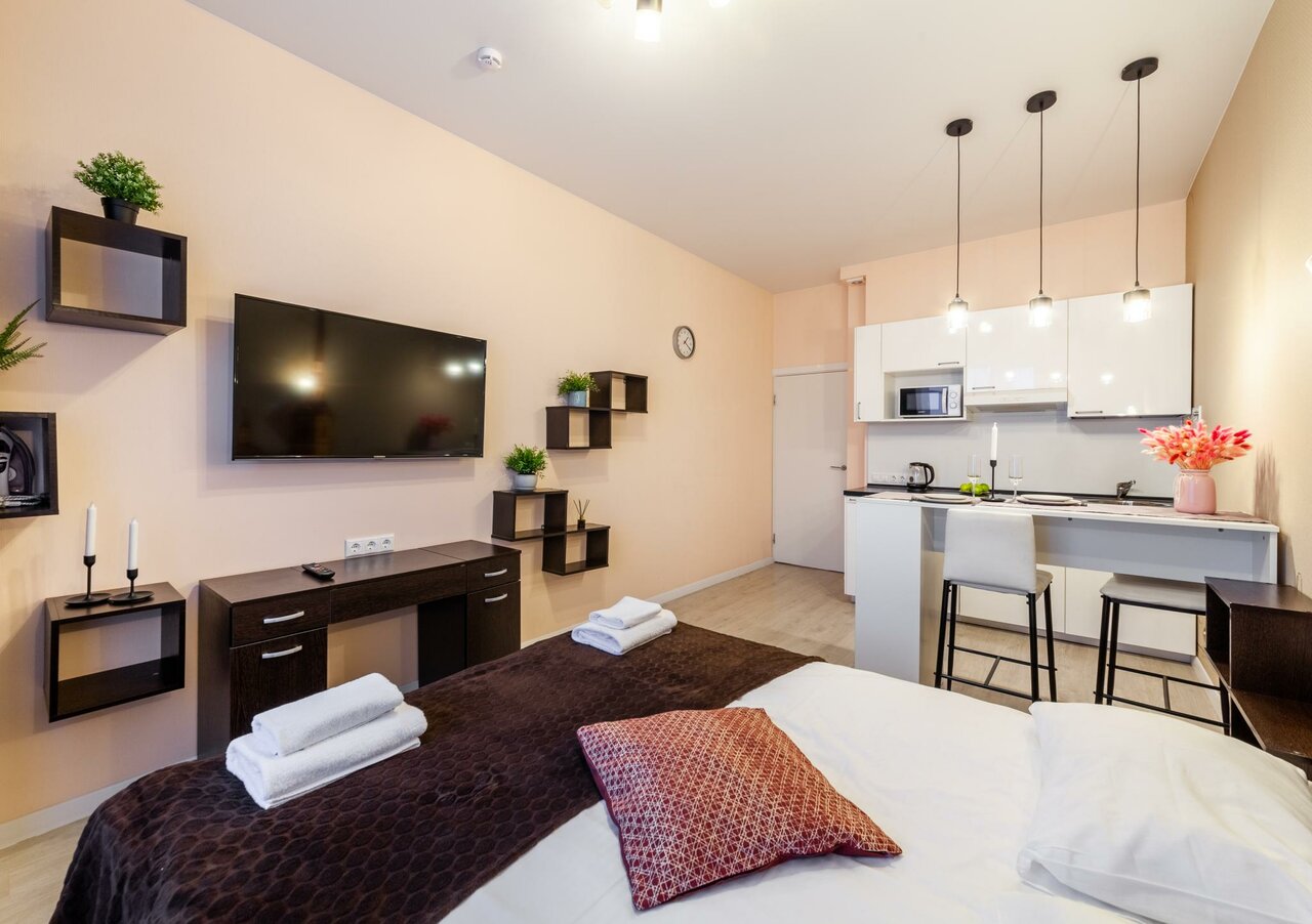 - Отзывчивый и вежливый персонал.; Хороший ремонт и современное оснащение.; Возможность самостоятельного заселения и выселения.; Наличие Wi-Fi и Smart TV.; Хорошая уборка и чистота.