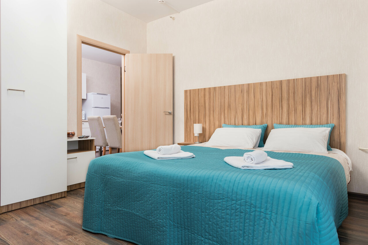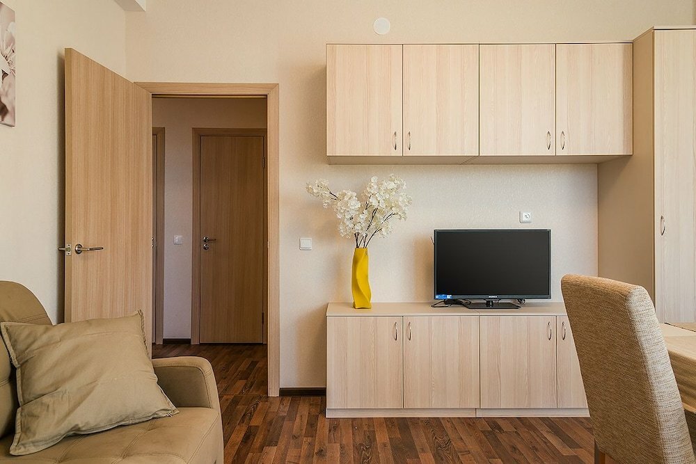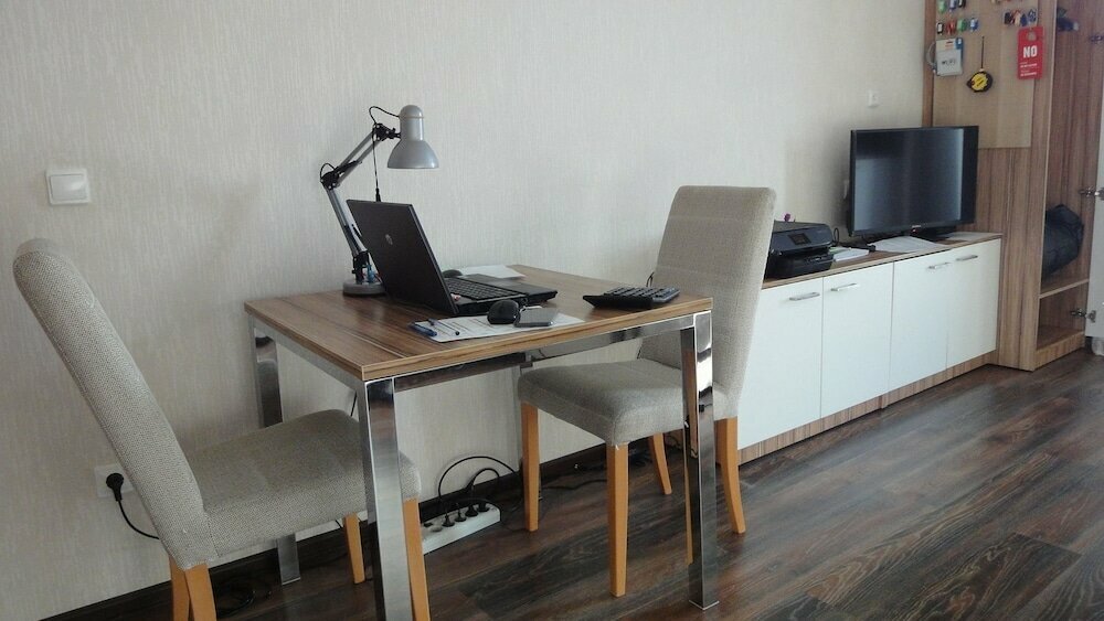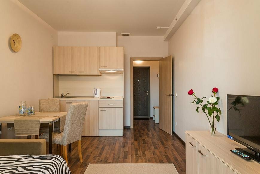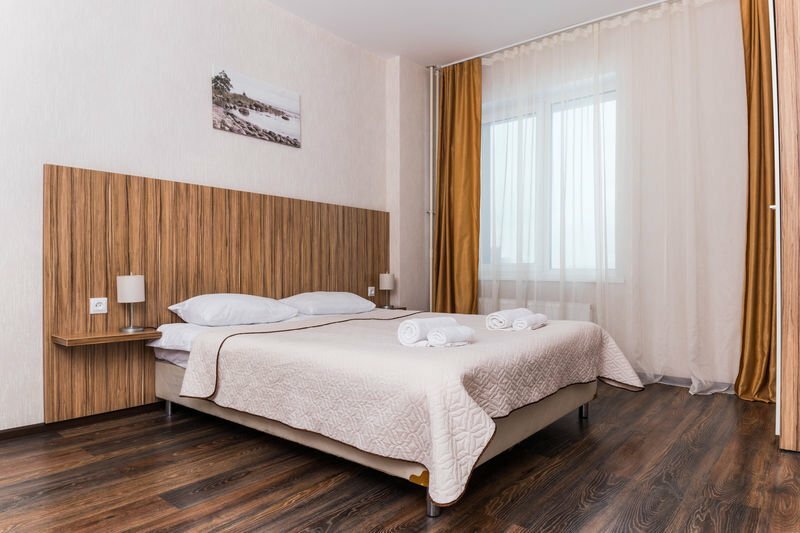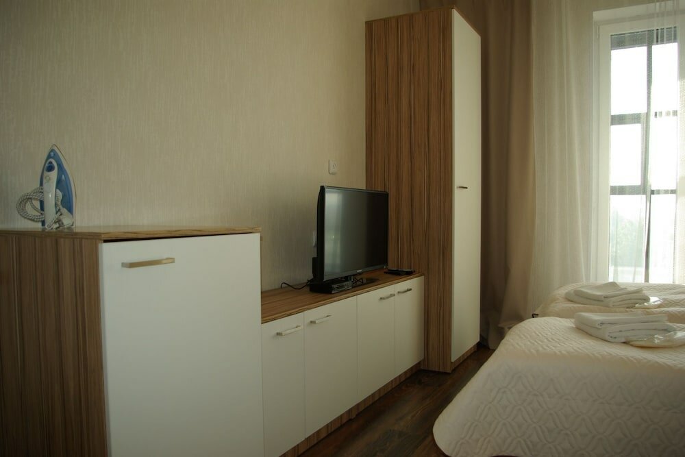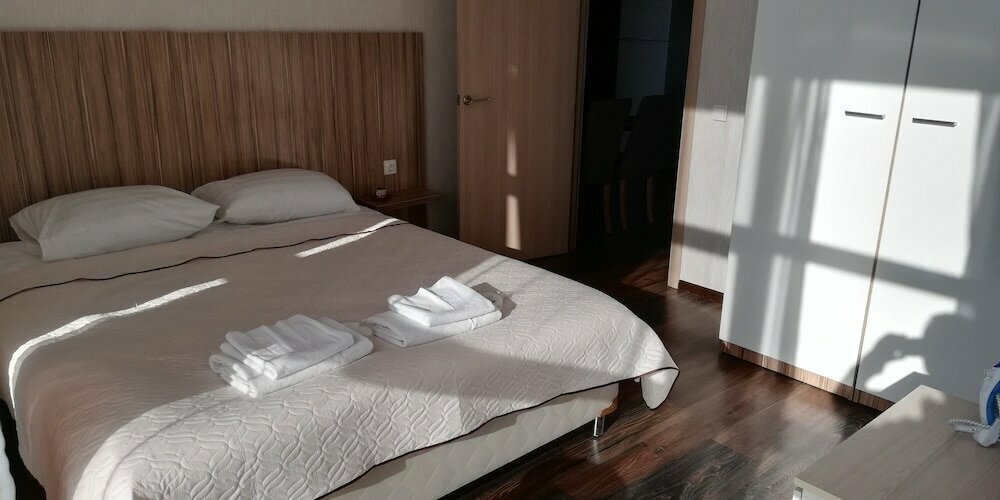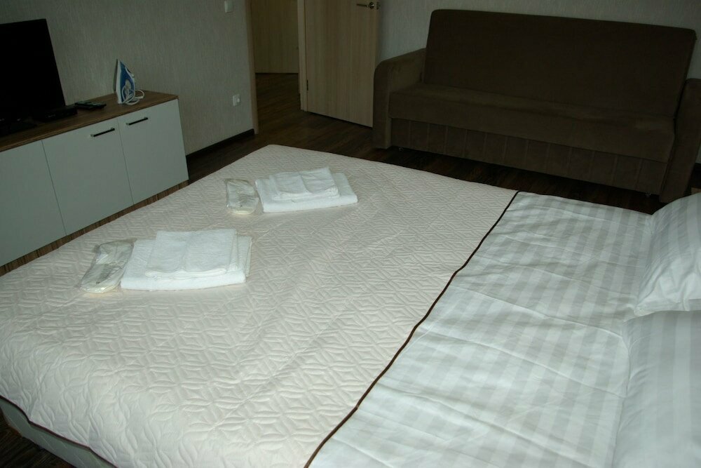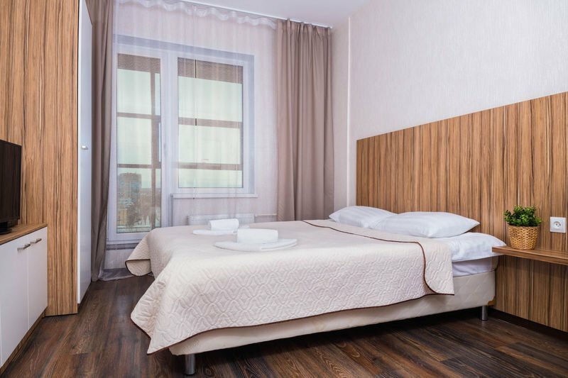Номер чистый, цена приятная. Но ужасная слышимость в апартаментах, слышно всех и все, как кашляют, чихают и разговаривают. По ощущениям как будто между апартаментами не стены, а шторки. Также мне попался номер, где полка (типа прикроватной тумбочки) почти отваливается, шкафы еле закрываются. И самый главный минус это кровать, а точнее матрас. Просто невозможно найти себе место для того, чтобы уснуть, везде впиваются пружины. После такой ночи еле с кровати встаешь. Вряд ли бы я посоветовала кому-то данные апартаменты.