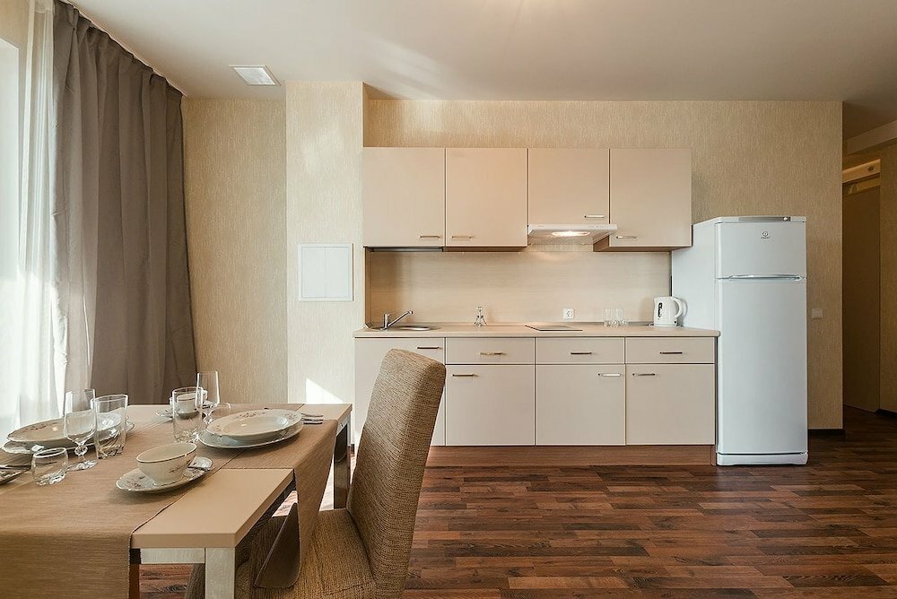 Удобства: ✔ Тренажёрный зал, салон красоты, бар, ресторан ✔ Бесплатная парковка, трансфер, лифт ✔ Прачечная, уборка, круглосуточная стойка регистрации ✔ Номера с холодильником, микроволновкой, плитой, посудой ✔ Проживание с животными, сад, караоке
