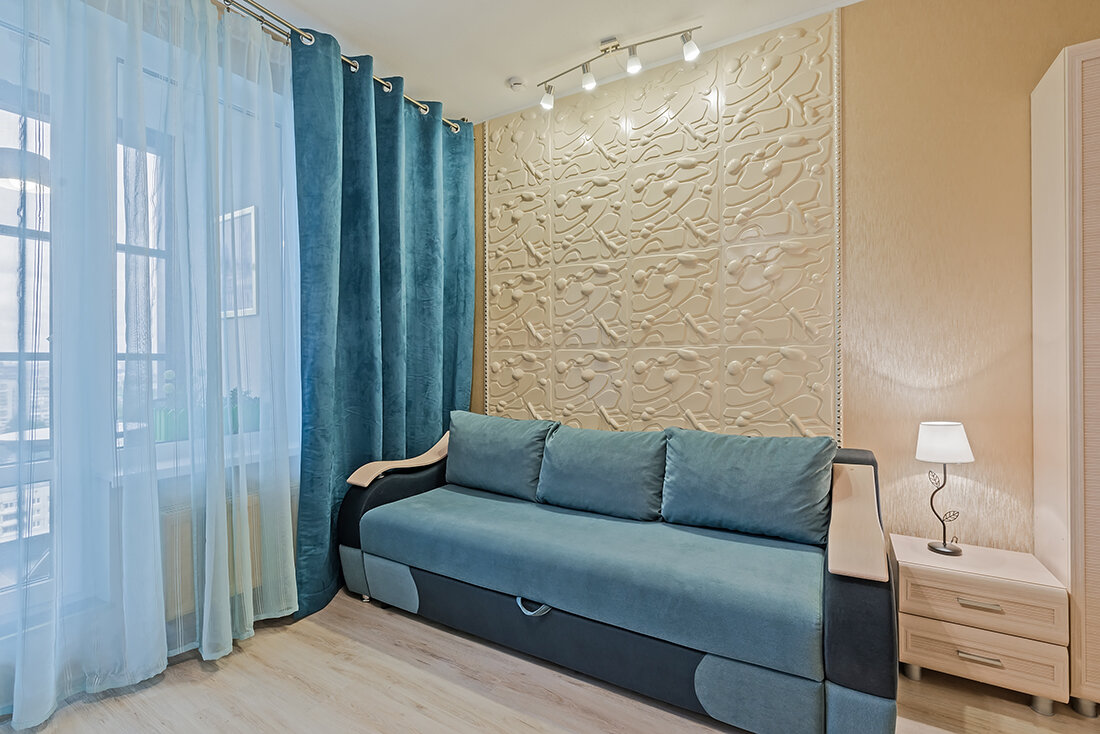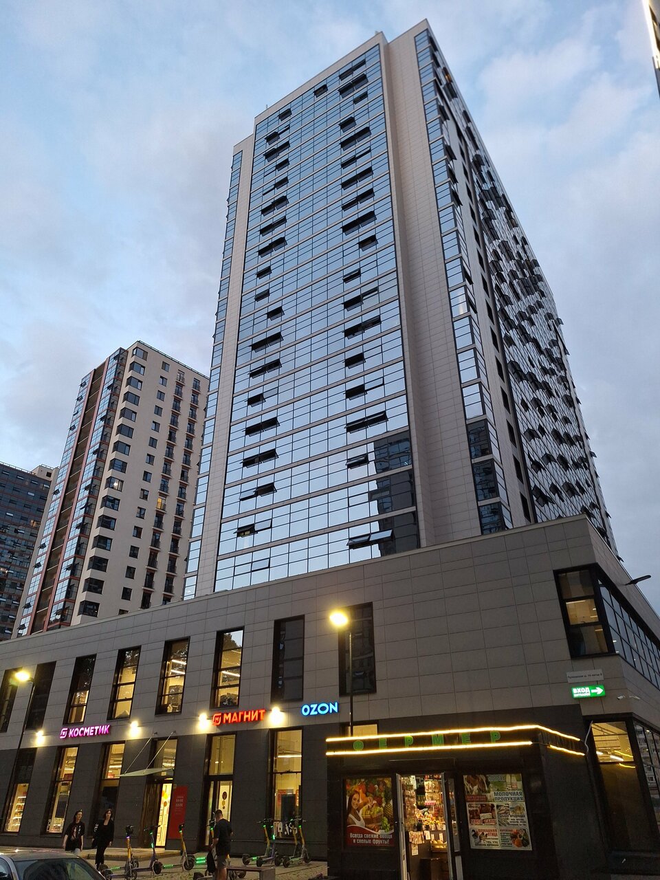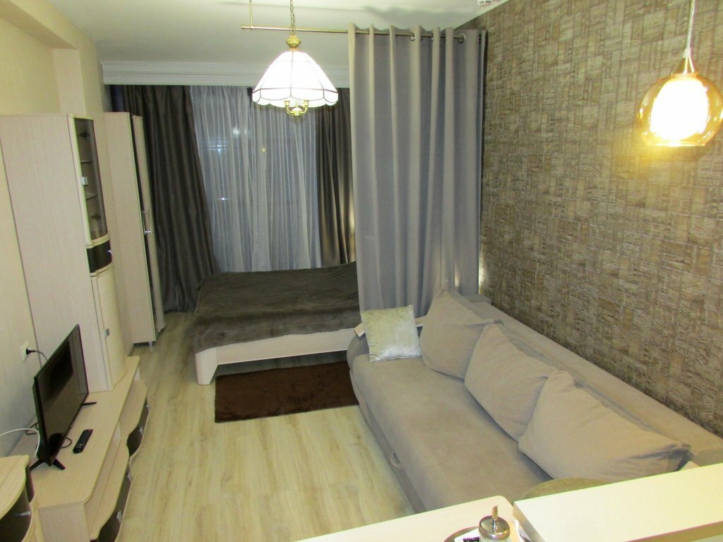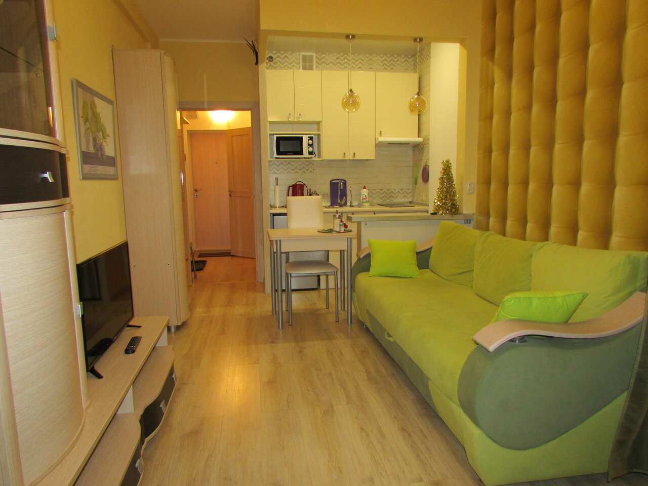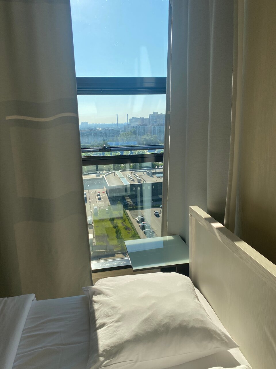 Номер 27м2 на 21 этаже. Звукоизоляция. Возможность дополнительного спального места (диван 160см ширина) Мини кухня. Душ. Панорамное окно