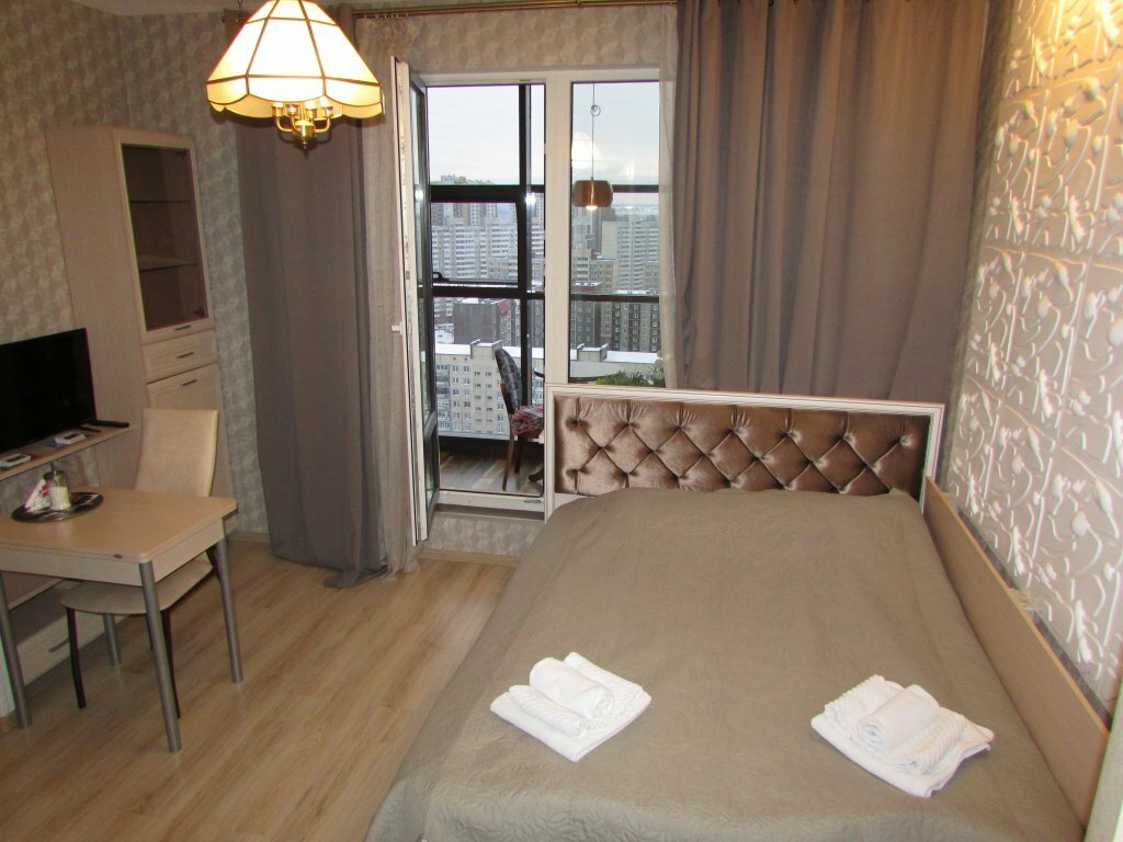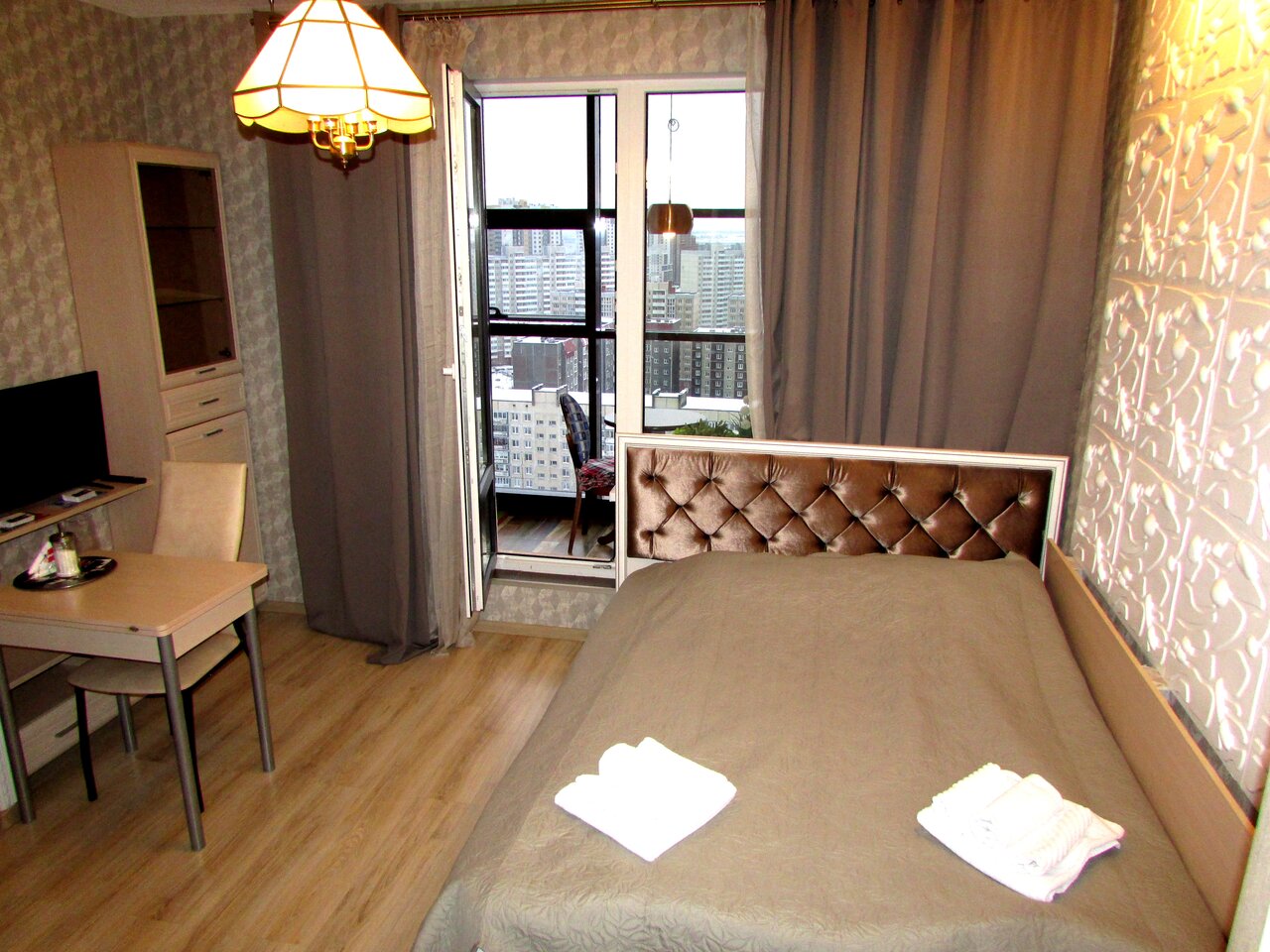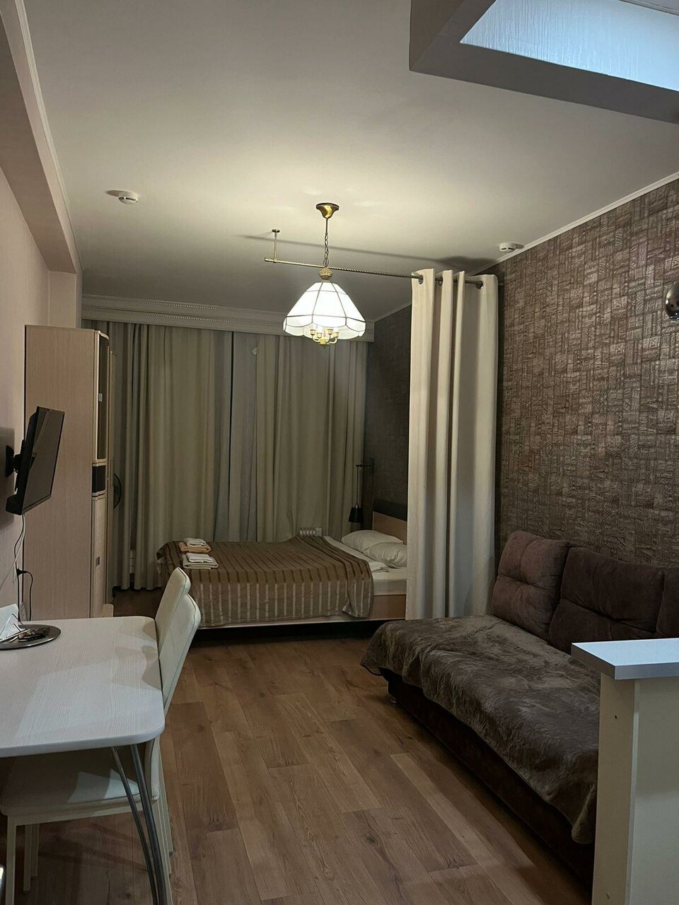Номер 27м2 на 21 этаже, звукоизоляция, мини кухня, Душ, панорамное окно, кровать 160см, Возможность дополнительного спального места-пружинный диван 160см