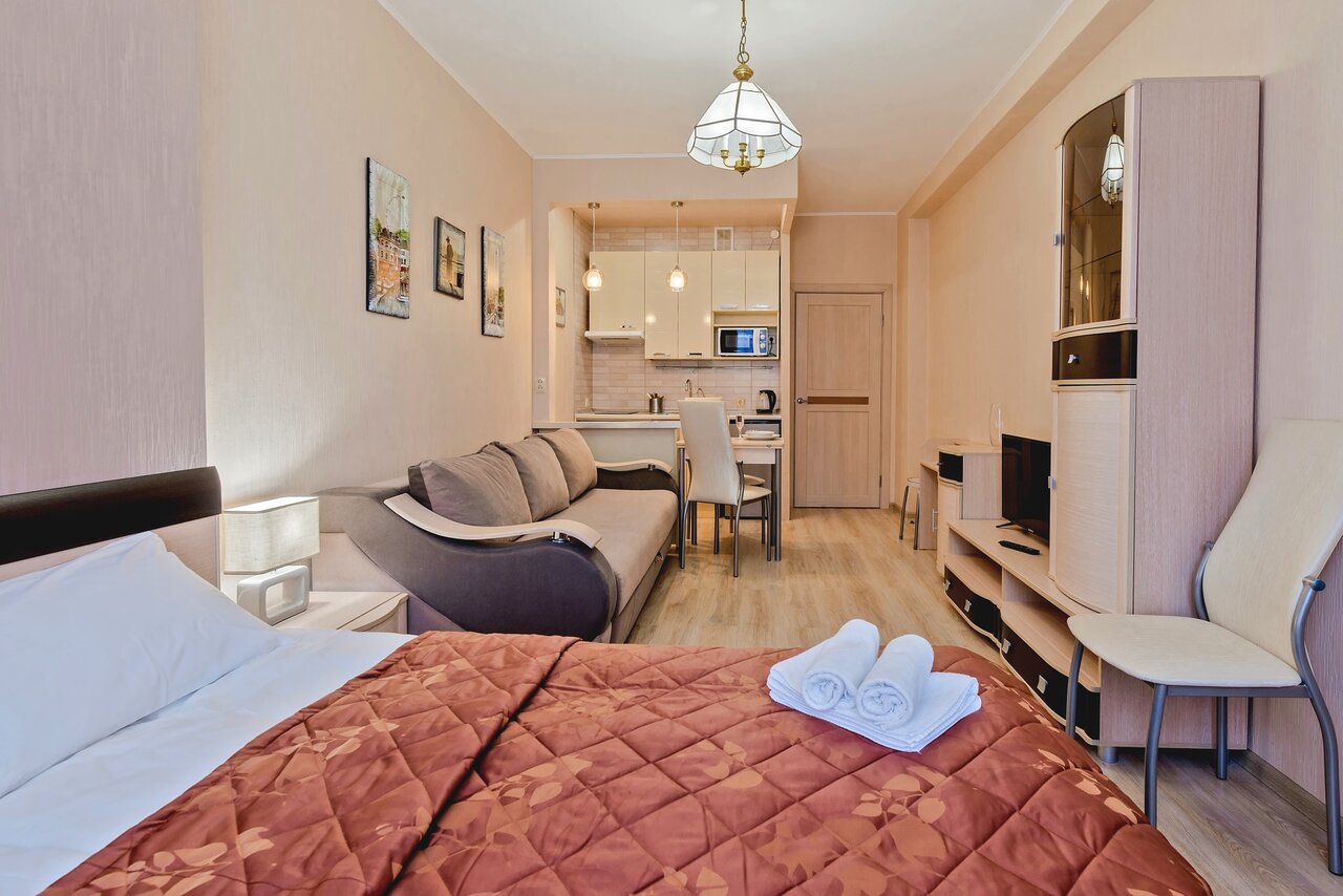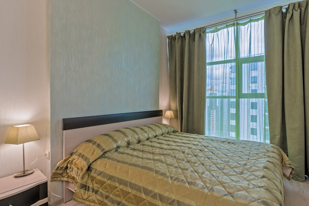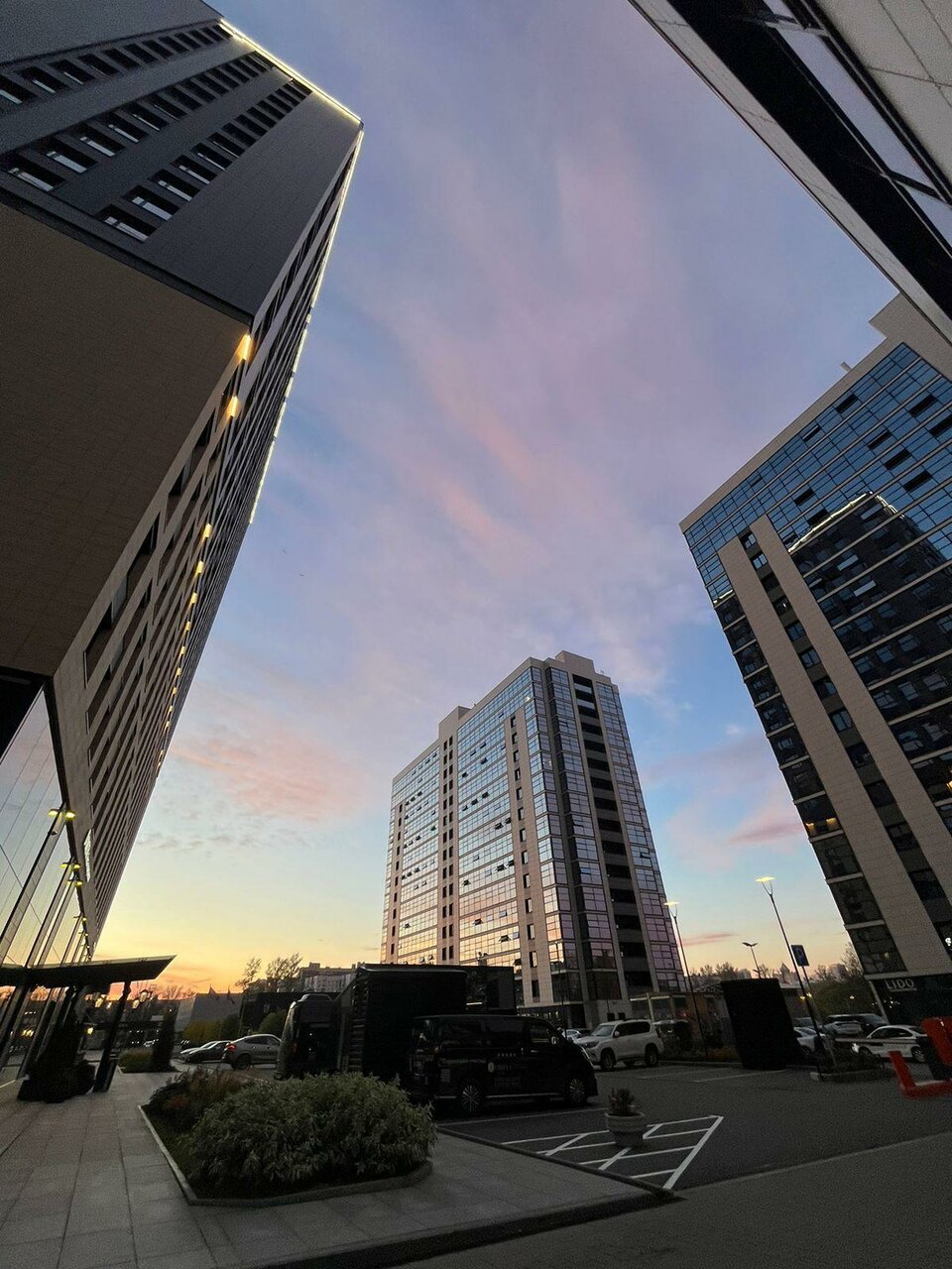 Номер 27м2 на 21 этаже, звукоизоляция, мини кухня, Душ, панорамное окно, кровать 160см, Возможность дополнительного спального места-пружинный диван 160см