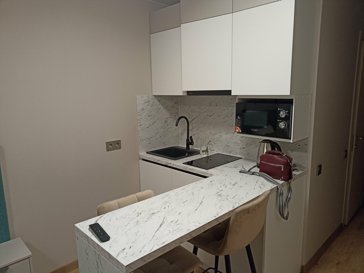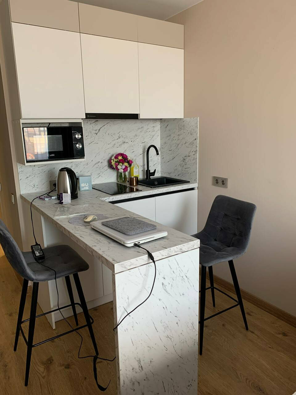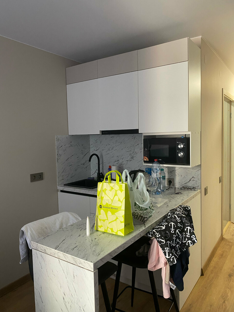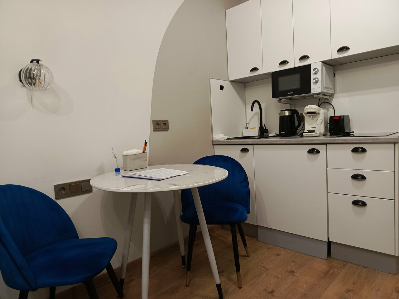 Мне здесь понравилось! Настоящий уют, чистота, минимальный, но изысканный комфорт. Всё для жизни продолжительное и короткое время. Рядом станция метро — это почти рай! В 2-х минутах, в цоколе ТРК столовая высокого уровня обслуживания, цены — норма, лучше чем все эти номерные столовые по городу. Здесь, в апартаментах, классно!