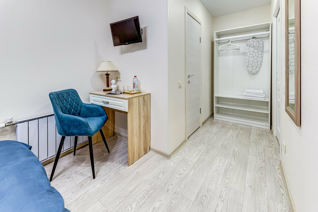 Отличное расположение: рядом метро, много кафе, столовая, магазины. Можно пешком добраться до нескольких театров, музеев. Удобное бронирование, заселение, вход-выход. Окна выходят в тихий двор. Вежливый, доброжелательный администратор, всегда на связи. Из недостатков — тонкие стены, в результате хорошо слышно соседей. Отсутствие холодильника и в номерах, и в общем коридоре (нам это было важно для хранения лекарств, да и для продуктов пригодился бы).