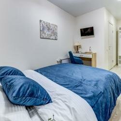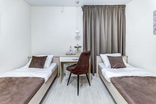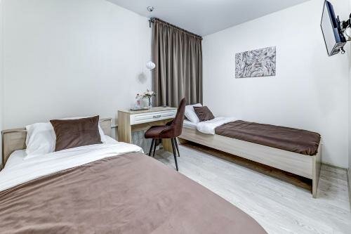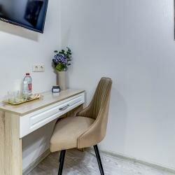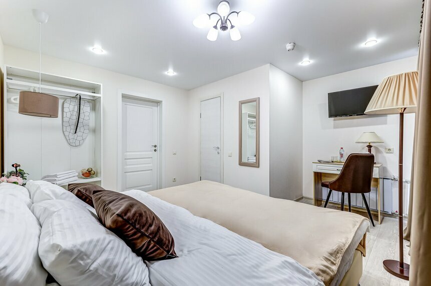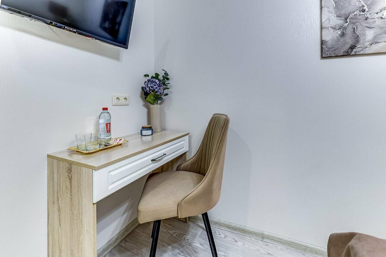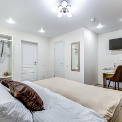Снимали номер с двумя раздельными кроватями, на трое суток. Приехали чуть раньше заселения, позвонили администратору — номер недоступен… В итоге кое-как нашли второй в Яндексе, нам ответили, сказали ждать до 14:00, перезвонят. Так и не дождались звонка, набрали сами. По телефону объяснили о, так называемом, бесконтактном заселении. Получили комнату, всё чисто, довольно таки свежий ремонт, но стоит понимать, что это именно апарт отель, то есть никакого сервиса толком и нет. Слышимость ужасная, стены картонные. Но в целом, мы довольны. Огромный плюс — расположение: рядом пекарня с вкусным кофе и выпечкой, парк, КБ, шава, табачка. До всех достопримечательностей идти около 15-20 минут по красивым, колоритным улочкам с кучей баров, рестиков и т.д. Итог: если в номер приходить только для сна, вполне себе неплохо, но если рассматривать данный вариант, как полноценный отель, то конечно же это не лучший выбор.