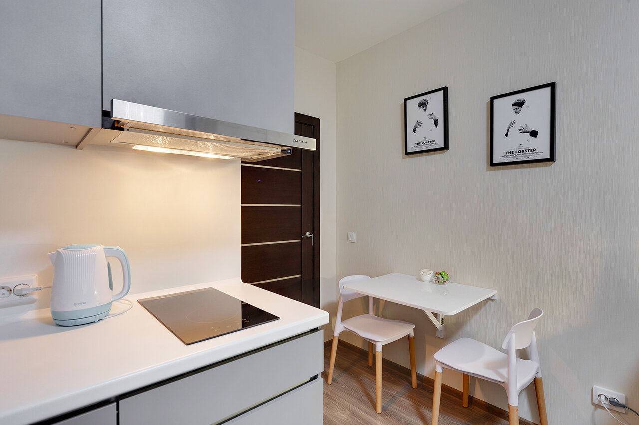 - Дистанционный вход в апартаменты (без встречи и привязки к времени).; Быстрое заселение.; Круглосуточный перекрёсток рядом.; Вкусный кофе в кофейне Baggins.; Закрытая территория.