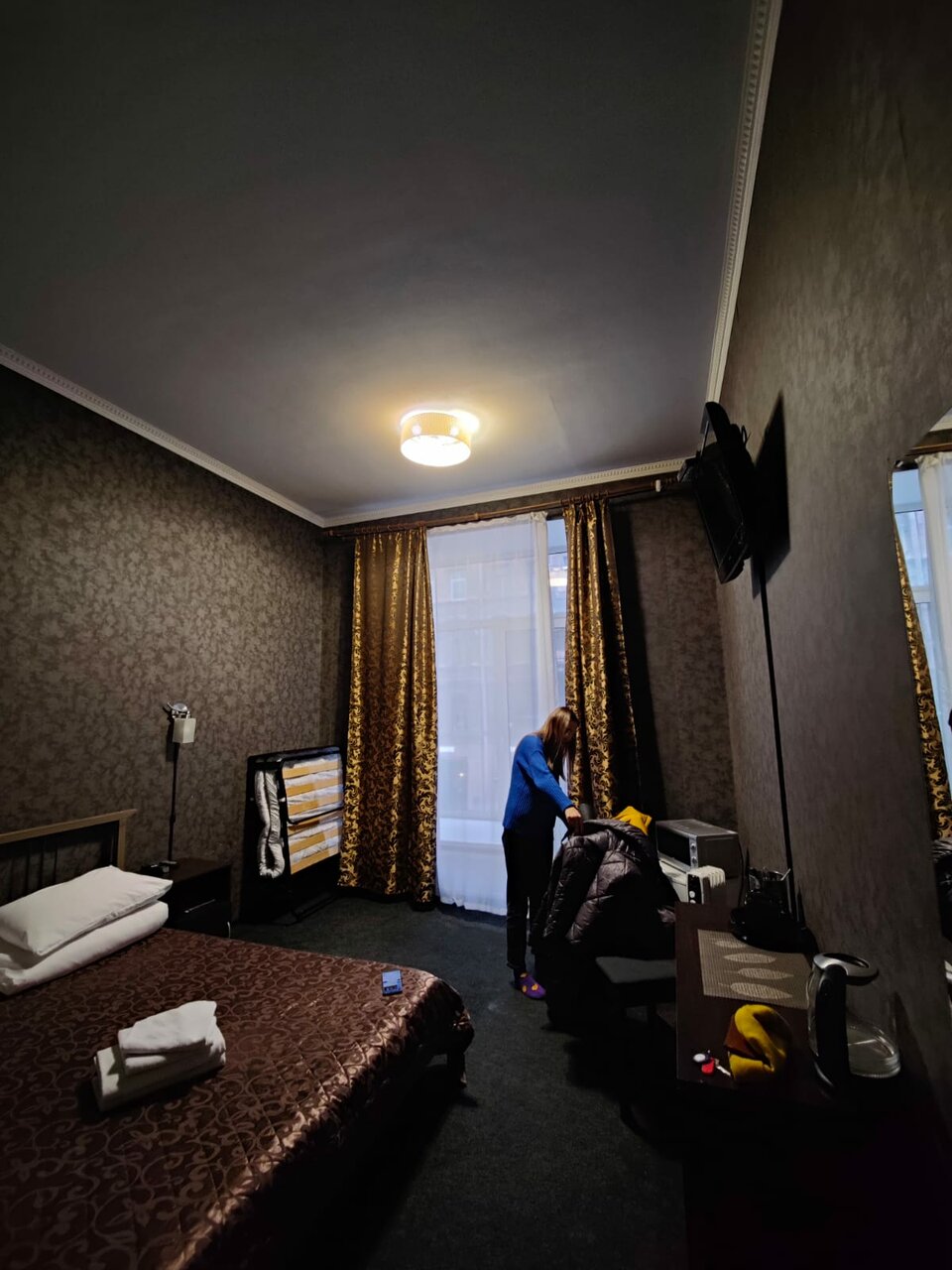 В путешествии с дочерью останавливались в этом отеле. Хорошее место расположения. Так получилось, что в номере только мылись и спали. Хочется отметить белоснежное постельное белье и полотенца, хороший напор горячей воды и хороший слив в душевой. Ремонт и мебель простенькие, но номера чистенькие и теплые. Питались за пределами отеля, так что удобствами гостиницы не воспользовались. Окна выходили на проезжую часть, но в ночное время тихо, движения нет. С учетом стоимости отель на твердую 4!